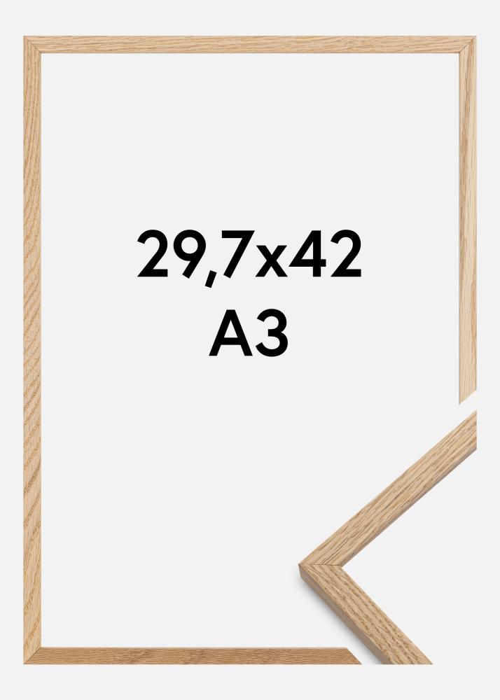 Solid oak frame in A3 format with a square frame profile. The frame is supplied with a crystal clear acrylic glass that is unbreakable, which at the same time gives the frame a lower weight.