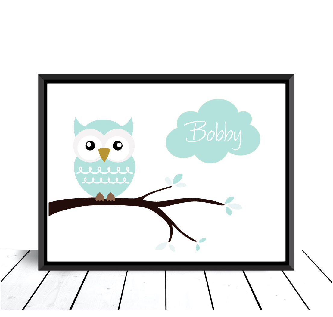 Owl Birth Poster Turquoise