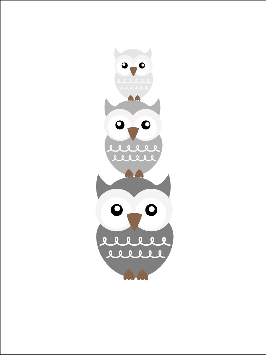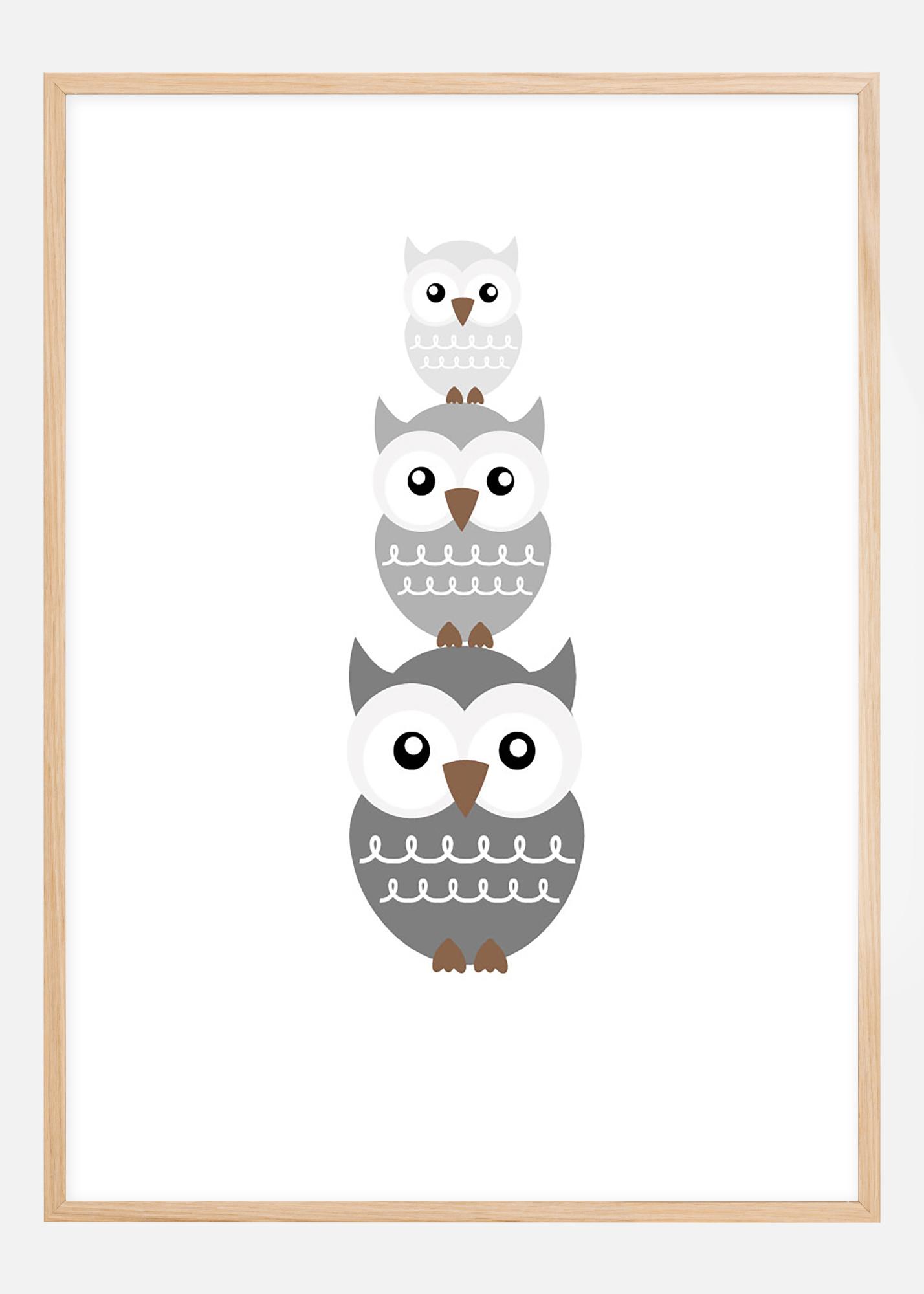 Three is better than one. Artwork featuring the number one indoor bird, the owl. The illustration of three stylised dim grey owls stacked on top of each other against a white background has become a modern classic. The motif fits just as well in the living room as in the children's room and pairs exceptionally well with an interior that picks up the colour in the painting. Combine with other birds or animals for a wild feel.
