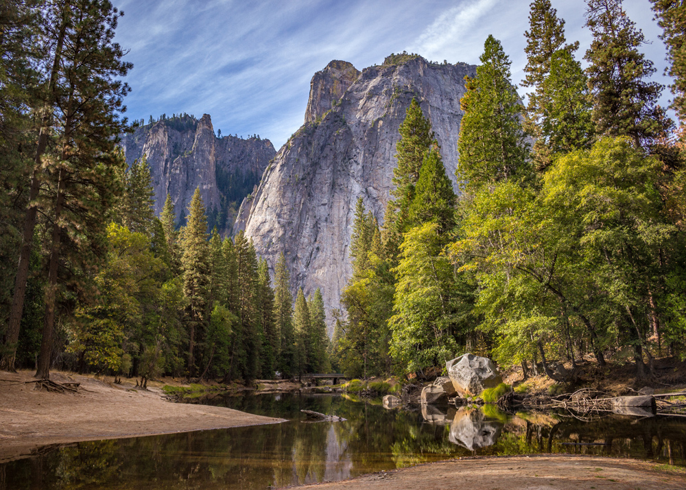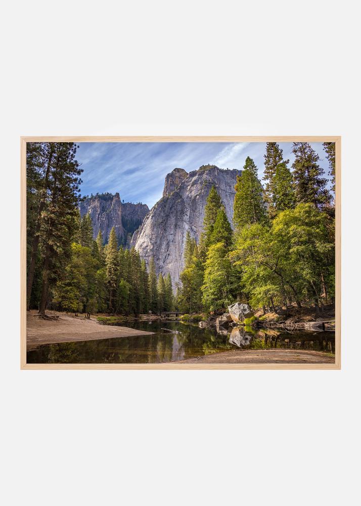 Print featuring high cliffs and a tranquil forest reflecting in a peaceful body of water. A speaking silence that creates a serene landscape. Together with a frame made of natural materials, the painting fits into all types of interiors and colour schemes. Hang the photograph along with other nature images or choose a larger size for an impactful effect as a solo painting.