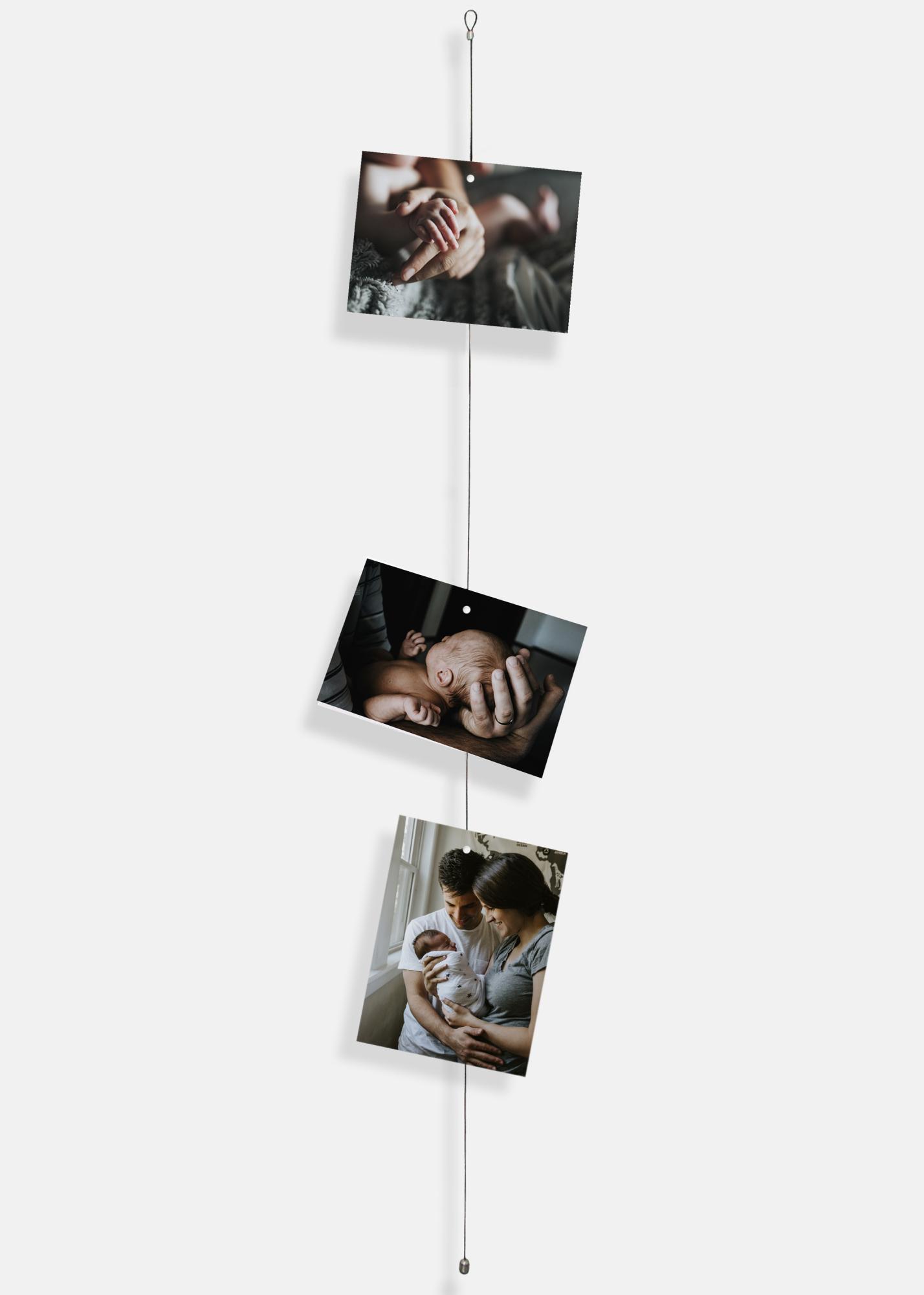 150 cm long metal photo string. Mount up to 10 of your pictures on it with strong photo magnets (included). Perfect for when you want a unique way of displaying your favourite pictures.