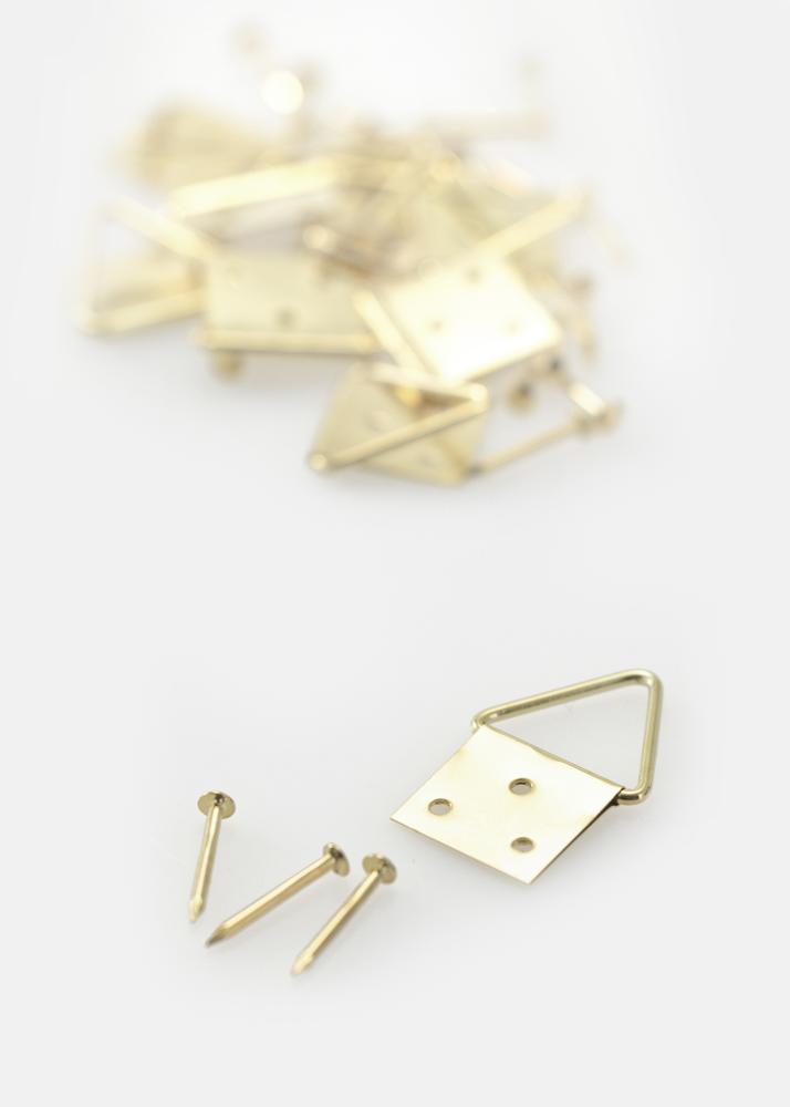 Triangular hooks in brass that you nail to the back of the frame. Can be used on their own or in pairs if you want to use picture wire. This hook is excellent for slightly larger paintings (maximum dimensions: 60x90 cm)