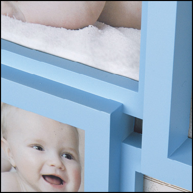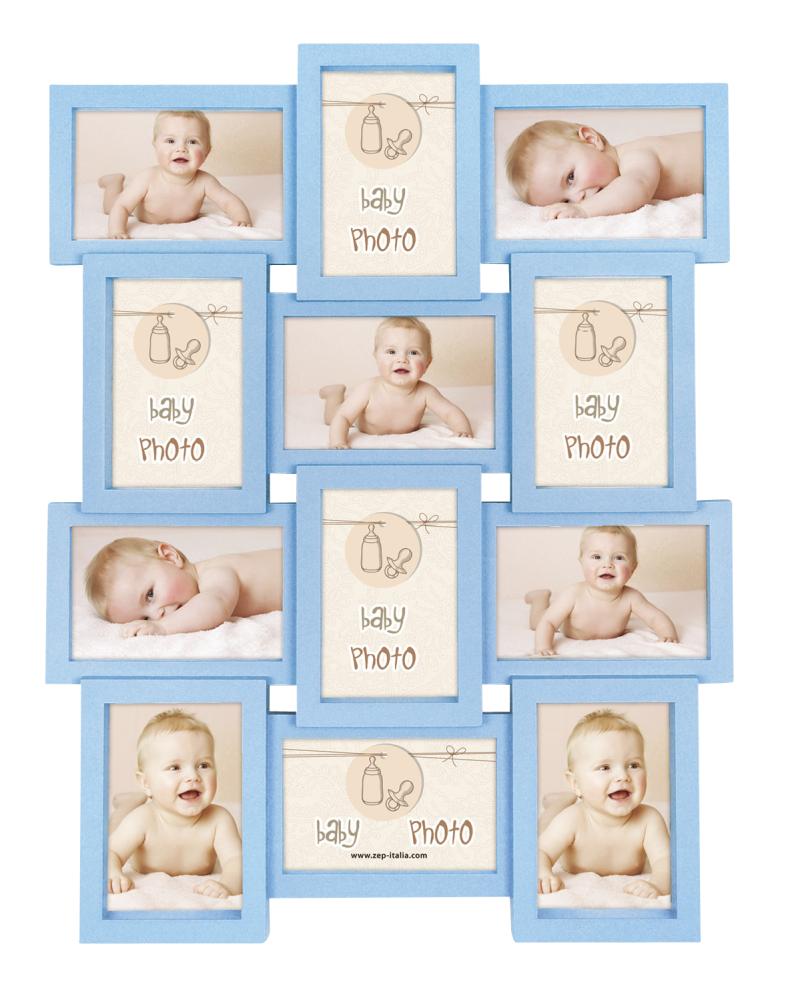 Put 12 of the cutest, funniest and most unforgettable pictures of the little one in this beautiful collage frame! The picture frame is made of light blue plastic and has glass over the picture spaces and a wall hanger on the back. Why not fill it with one picture from each month of your child's first year of life?