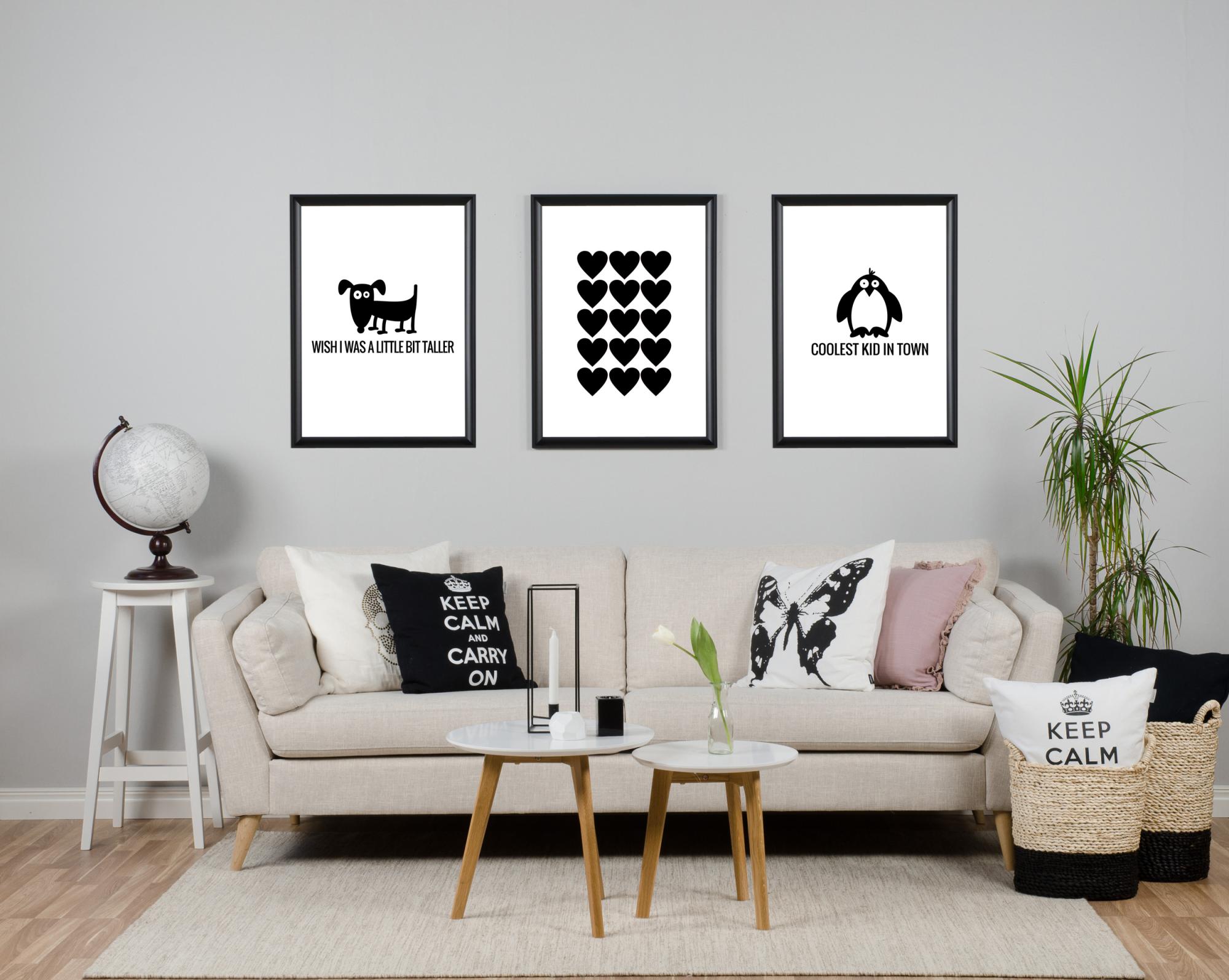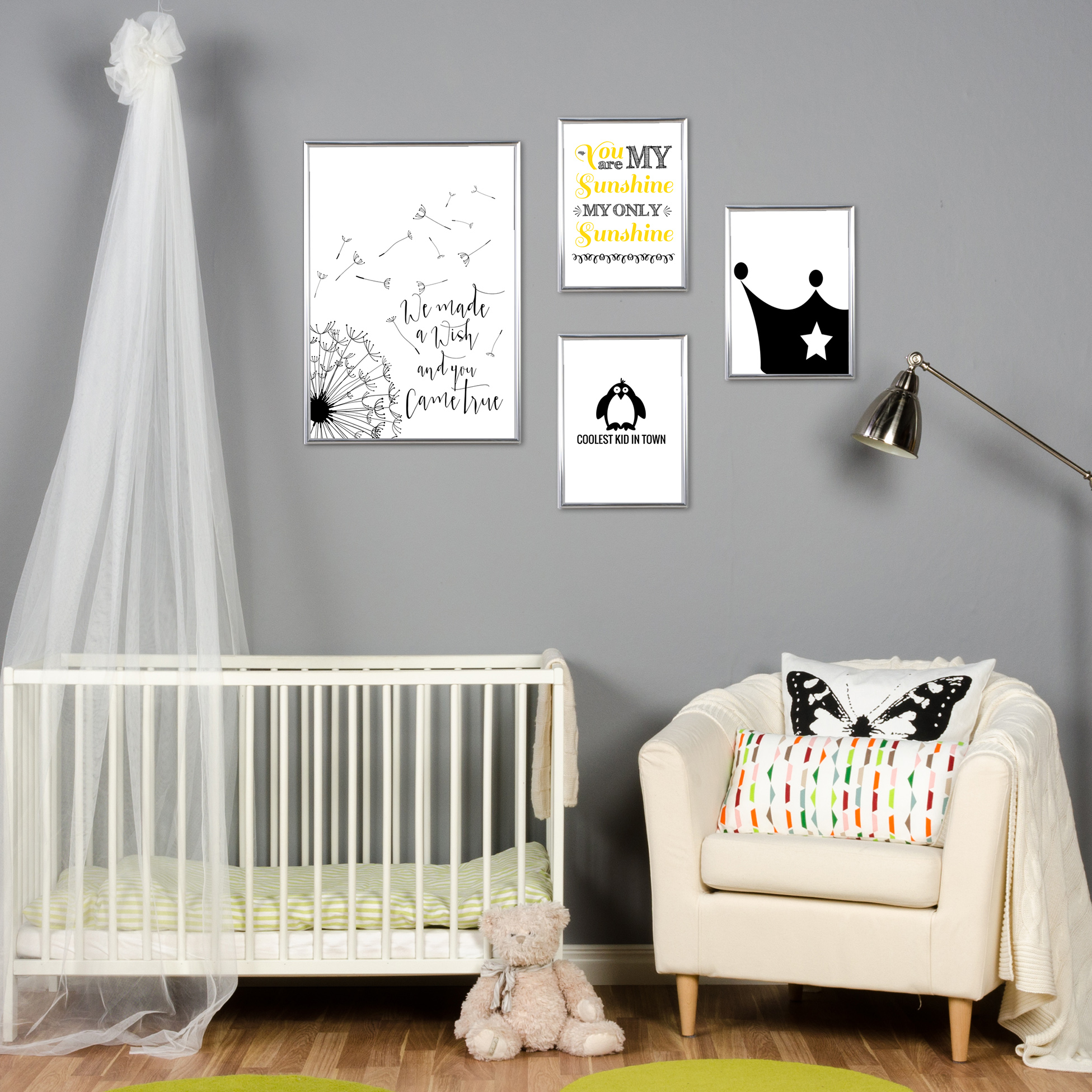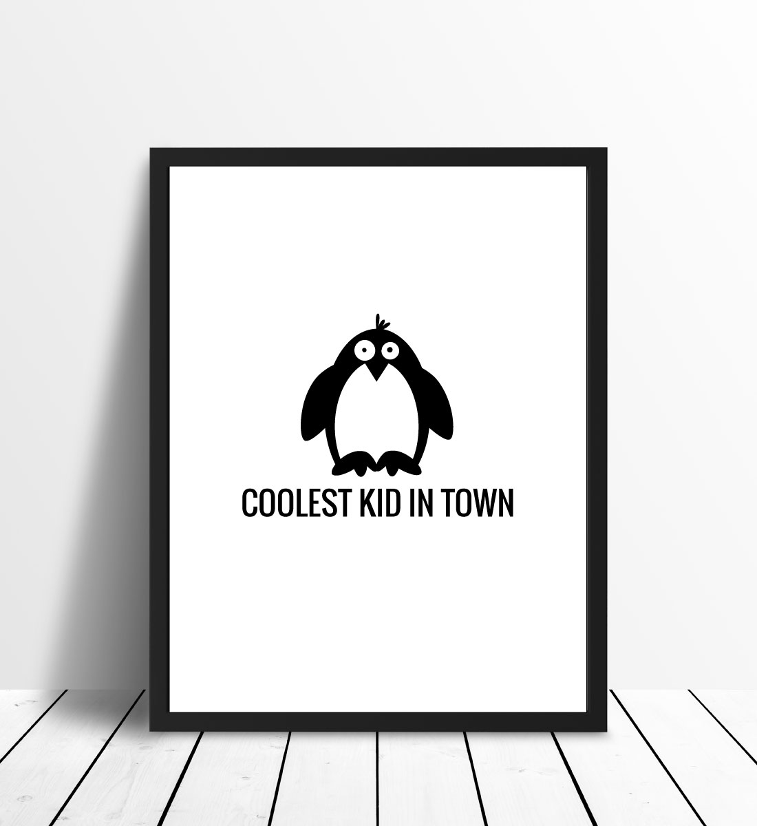 Poster with the coolest motif in town. Penguins are cool and so are the kids who have this poster. The graphic black and white illustration, with a stylish typeface, fits into any children's room. Combine the poster with any of the other prints in the same style to create a series - Dino Favorite, Elephant Dream, Dog Little, Superhero or Rabbit Happy.