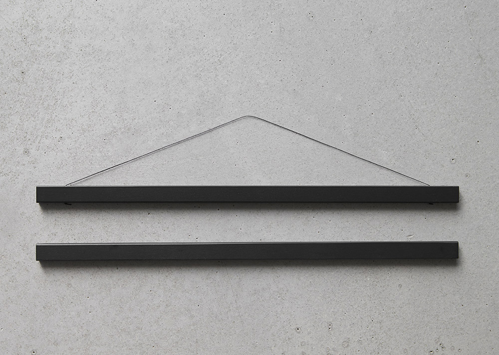 Unique poster hanger with two functions in the same product. Use as a classic poster hanger with string on the wall, or remove the string and attach the strip directly to the wall.