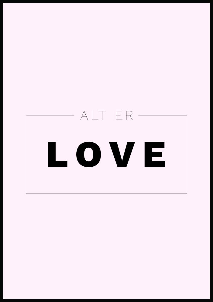 Quote - Skam - Alt er love - Pink Poster (21x29.7 cm (A4))