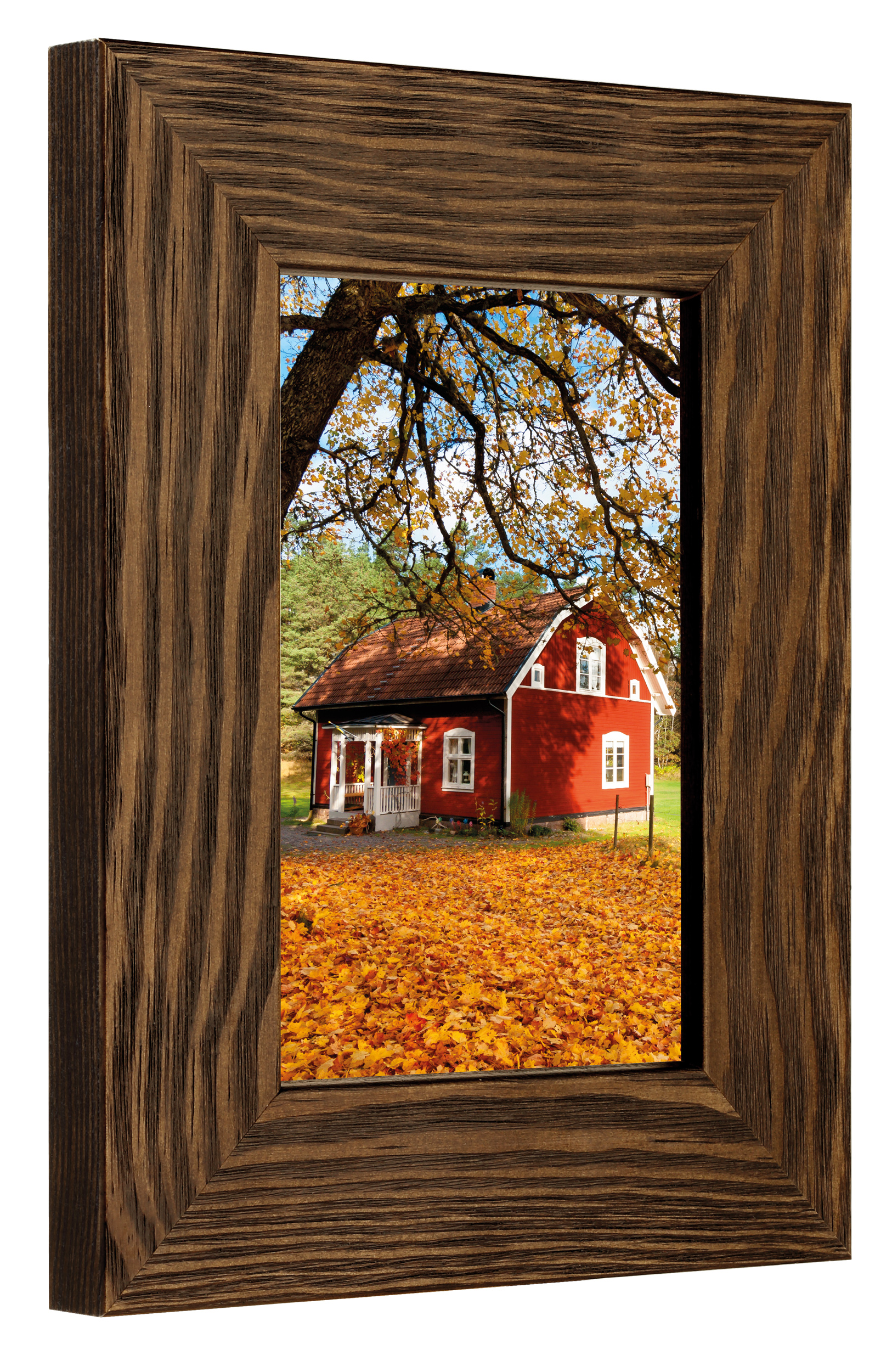 A solid brown wooden frame with a visible wooden texture and wide form. Great when you're looking for a dark wooden frame with a natural feel. Perfect for photos of landscapes and the outdoors.