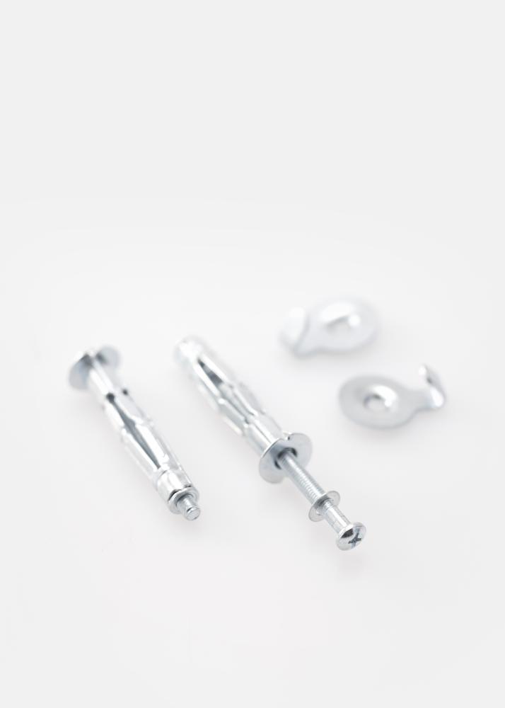 2 plasterboard plugs and M4 screws for 13 mm plaster walls. The groove in the plug is suitable for 8 mm screws.