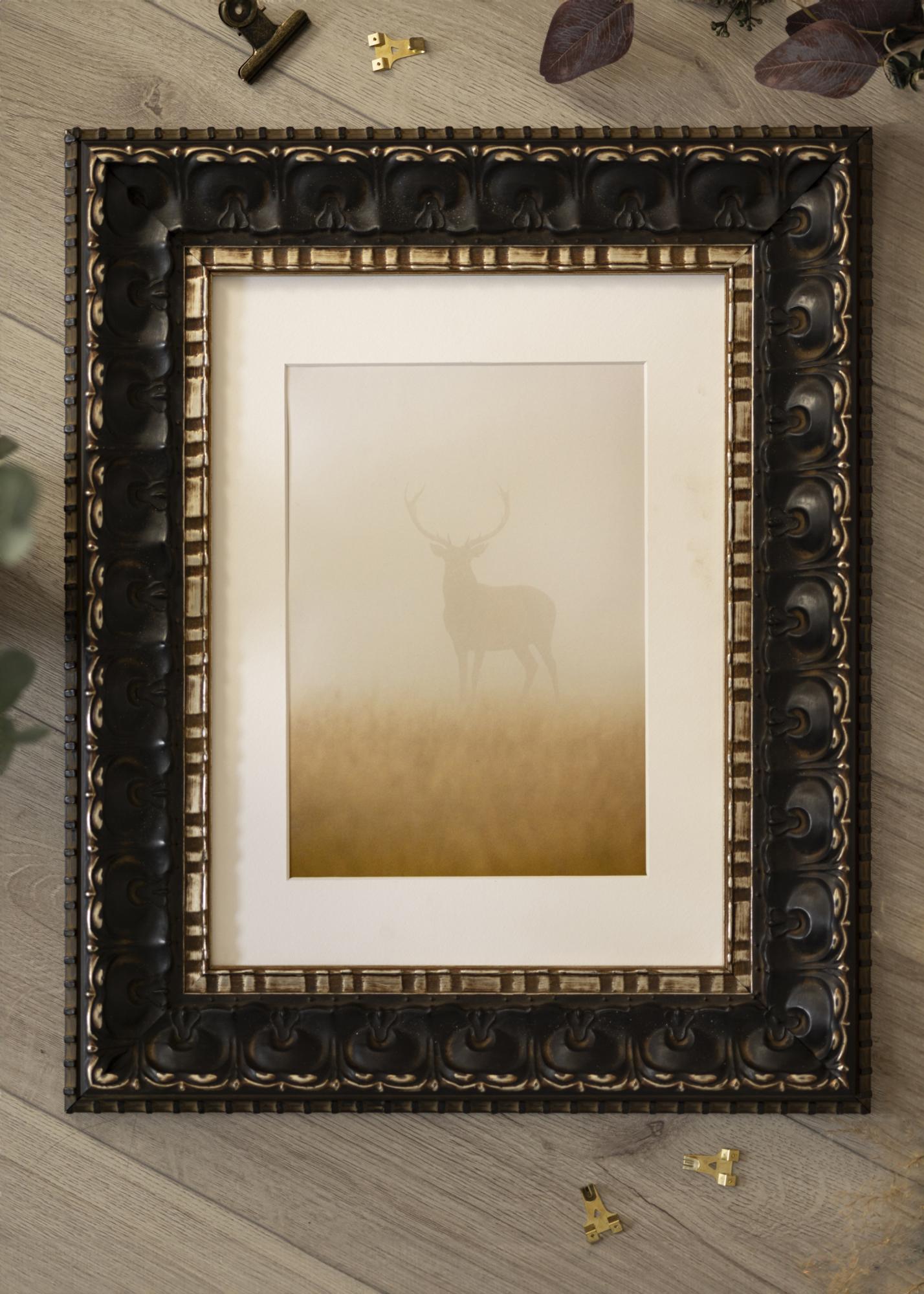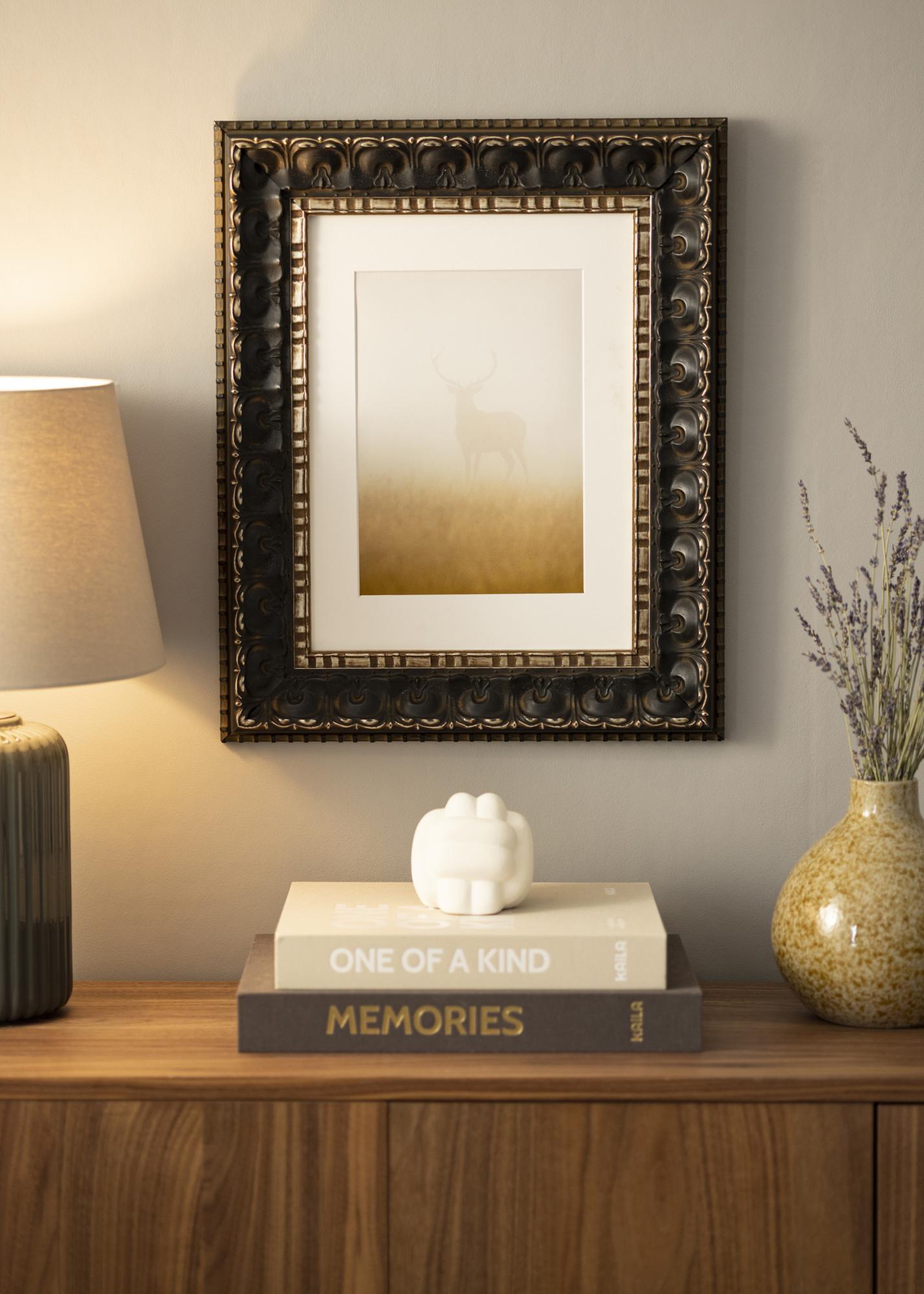 Frame Skokloster Black is the perfect solution for those seeking an elegant and classic framing for your pictures or artworks. With its deep black base and antique gold details, this photo frame offers a sophisticated and luxurious feeling that enhances every subject. The detailed patterns along the edges give the picture frame a unique expression, making it an excellent choice for those who appreciate timeless design with a touch of antique charm.
