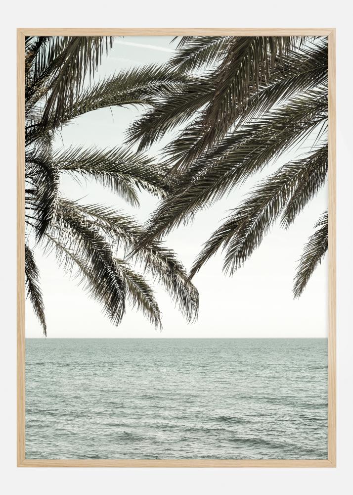 This poster brings a piece of the tranquil feeling of beach life directly to your home. The palm leaves frame the serene ocean view and the sky above in a way that captures the unique beauty of a coastal landscape. The soothing green color of the palms naturally contrasts with the blue of the sea and the brightness of the sky, providing a sense of harmony and eternity.