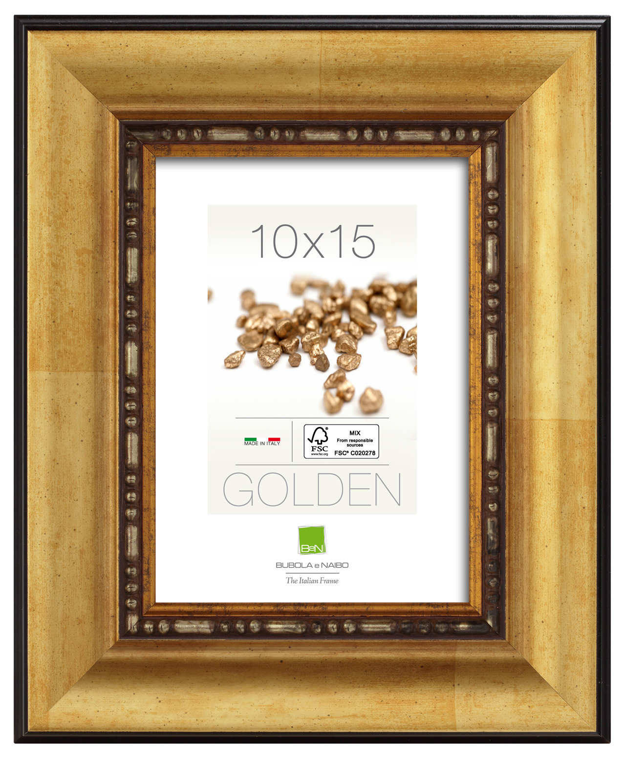 A classic portrait frame for your extra special pictures. The frame comes in black and gold and has decorations around the space for the image.