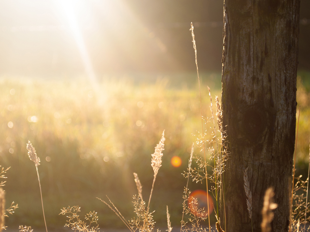 Poster with a sepia-toned backlight photograph of a late summer meadow with seeding blades of grass in the foreground. The motif is tranquil, and one can almost hear the chirping of grasshoppers in the warm summer evening. The poster fits well into all types of interior styles with its subdued colour palette and looks nice when hung together with other nature motifs.