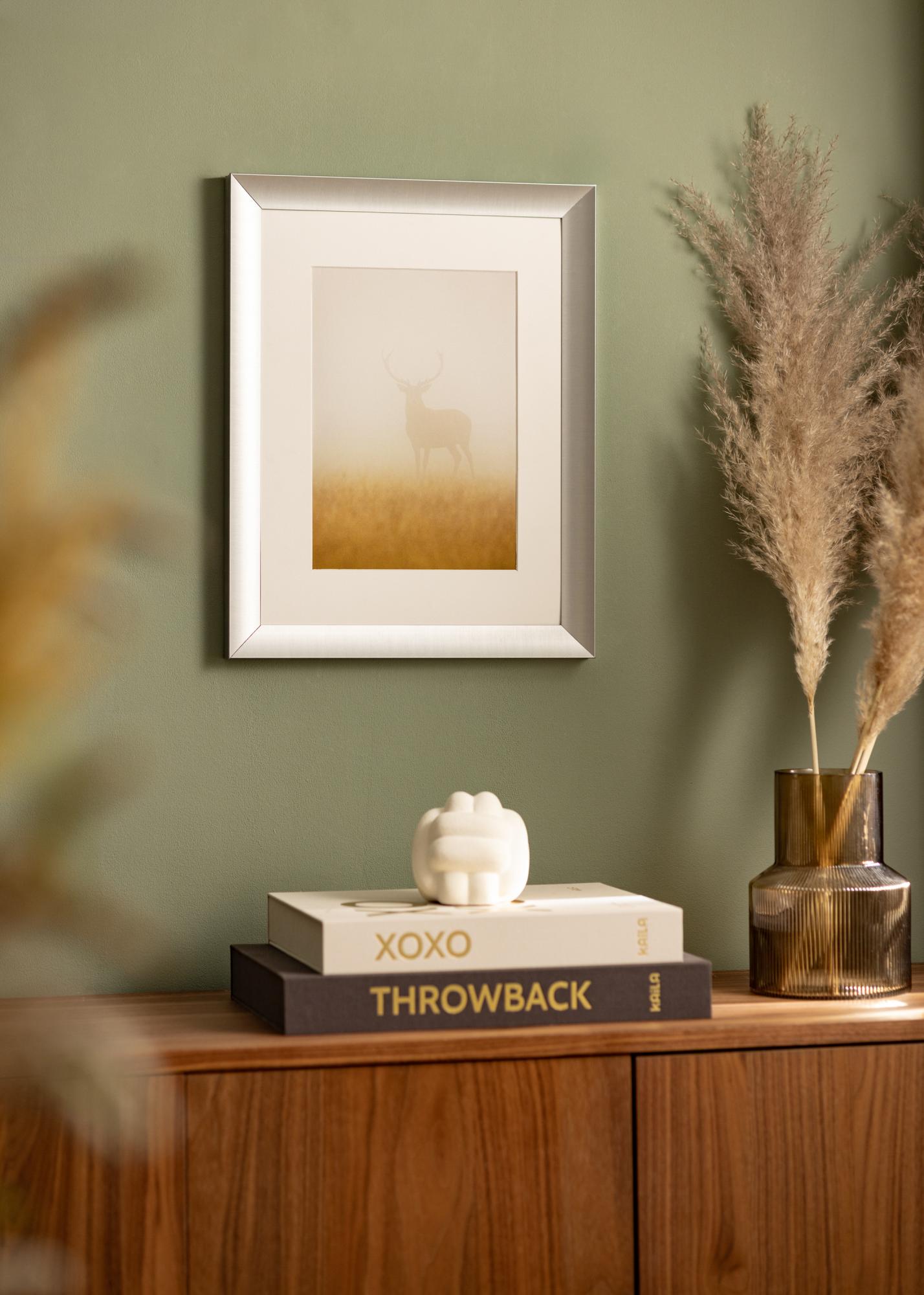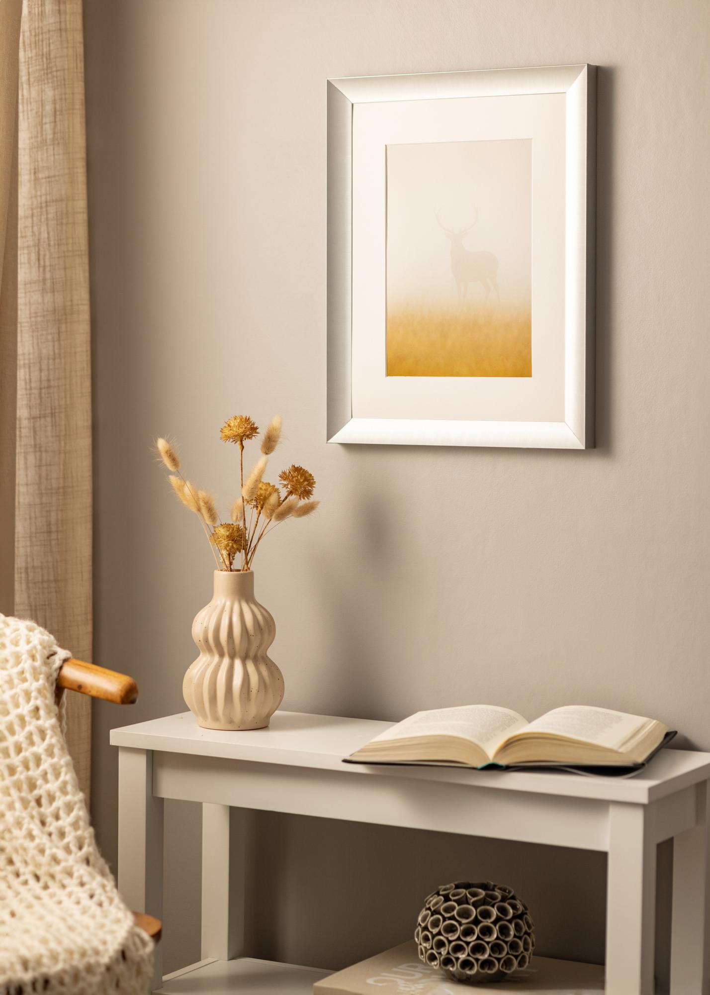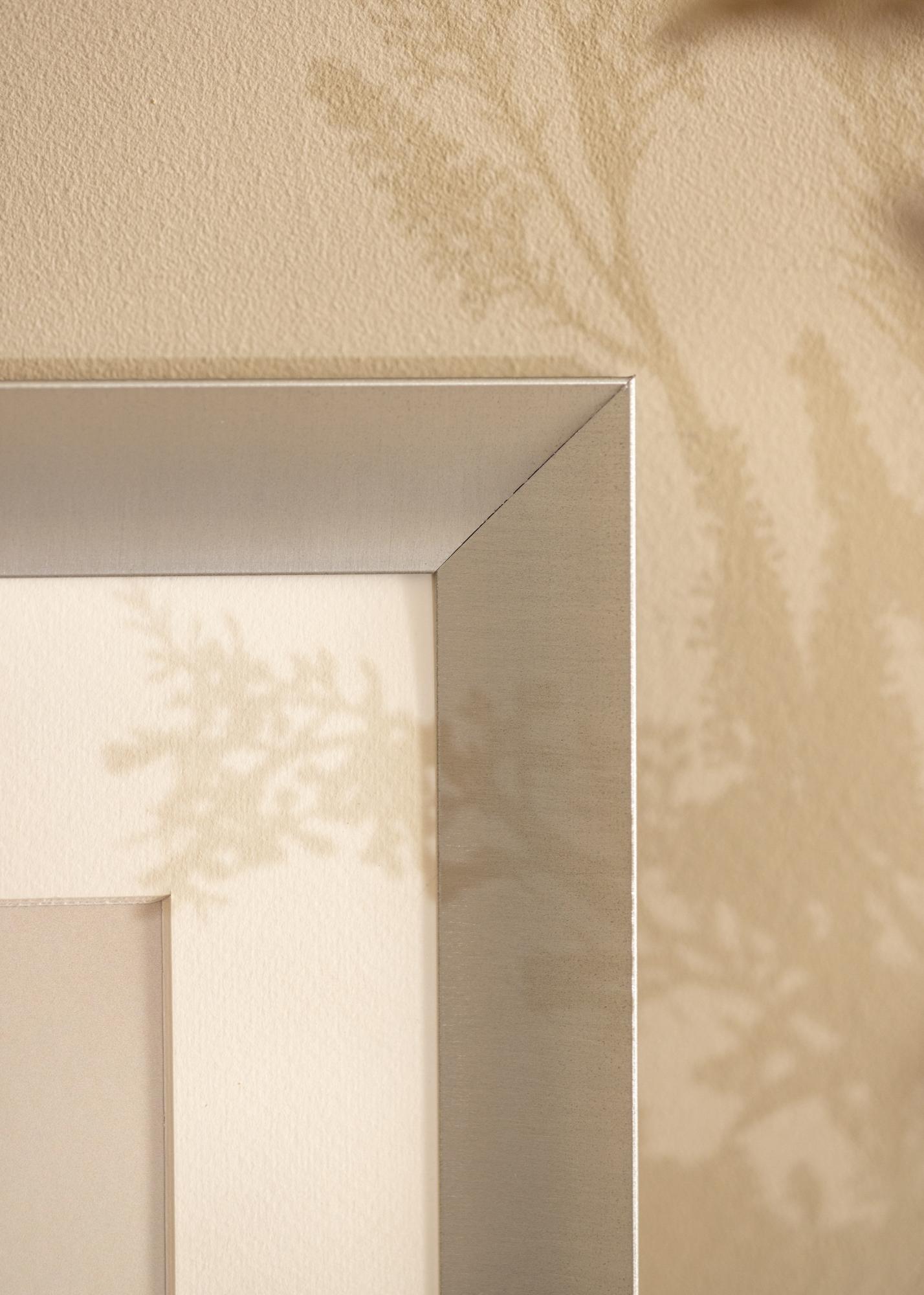 An elegant photo frame in semi-matte silver. Perfect for framing black and white photographs or pictures in greyscale, but also works with all other pictures. The stylish look and the discreet silver colour mean that the frame looks good in all rooms and spaces, but it goes particularly well on a pale pink, cool green or pastel-coloured wall. Complete the look with accessories in silver and prints with black details.