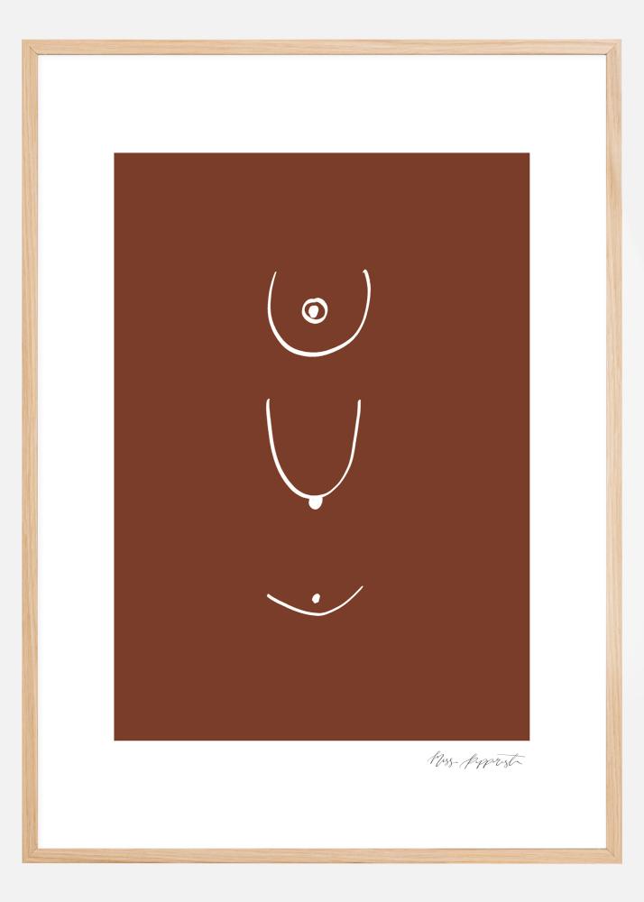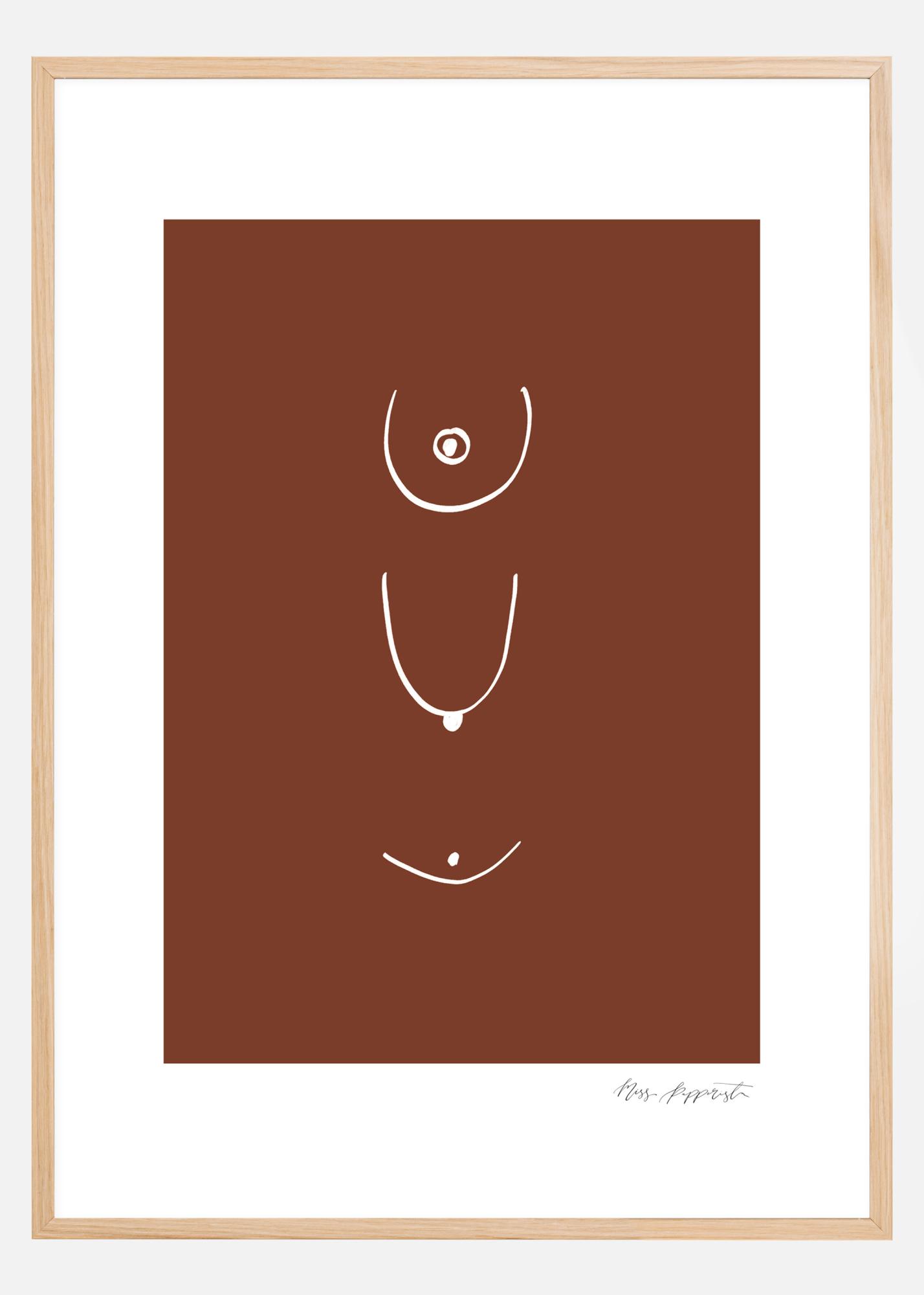 An abstract poster of white curving lines and dots on a plain brown background. The lines can be interpreted however you want, but they look like women's breasts drawn from different angles. Enjoy the slightly weird nature of this simple image.