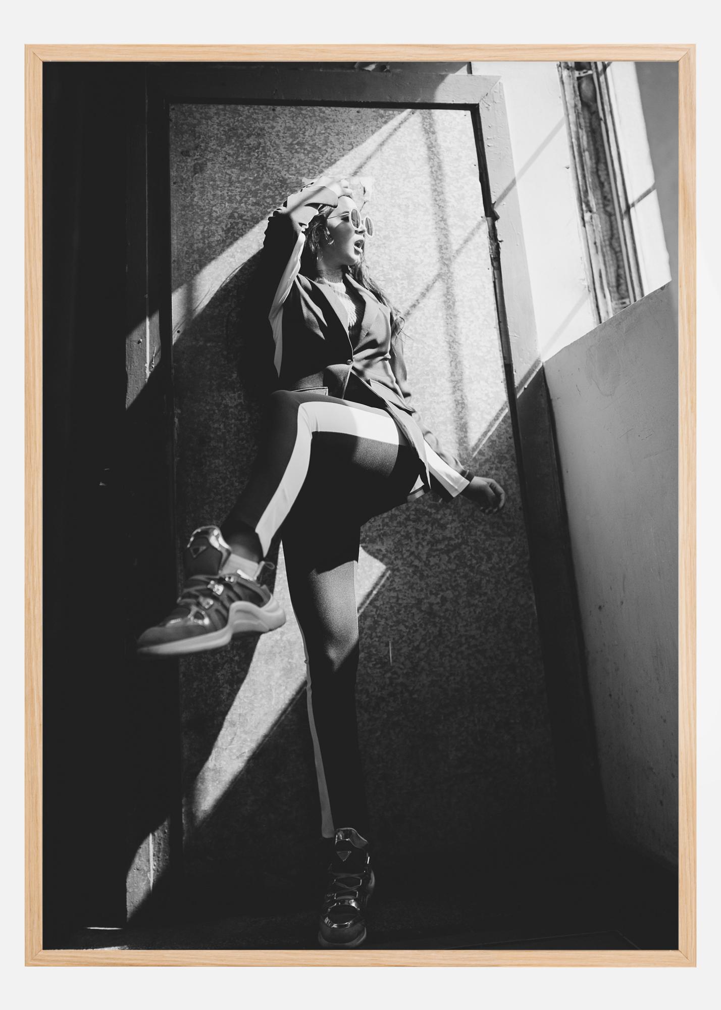 Stylish photographic art in black and white. A poster that conveys a nice mix of strict and fashionable in contrast to the casual and playful through its expression. Feel free to combine with other favourites on a larger picture wall.