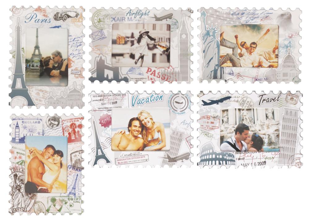 The frame is available in six different travel-inspired designs. Indicate in your order if there's a specific theme you want.