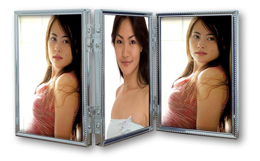 Triple Silver 3 Pictures Folding Frame 10x15 cm is a great option if you're looking for a folding frame with space for three pictures that gives your photos that little something extra. This frame is made of nickel silver and has a black velvet back, and it looks just as good on your bookshelf at home as it does in Granny's living room.