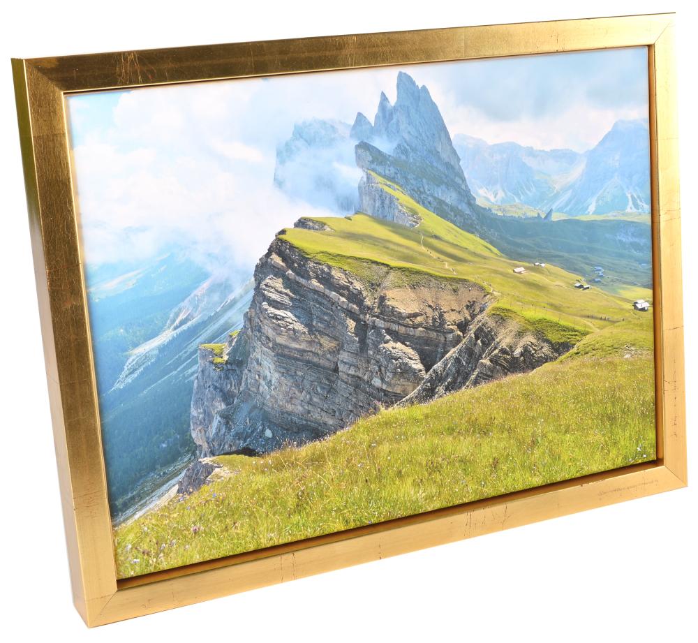 Västerås is a box frame with a depth of 20-27 mm that's great for objects such as canvas paintings. With its gold colour, Västerås gives your painting a shiny, elegant look.
