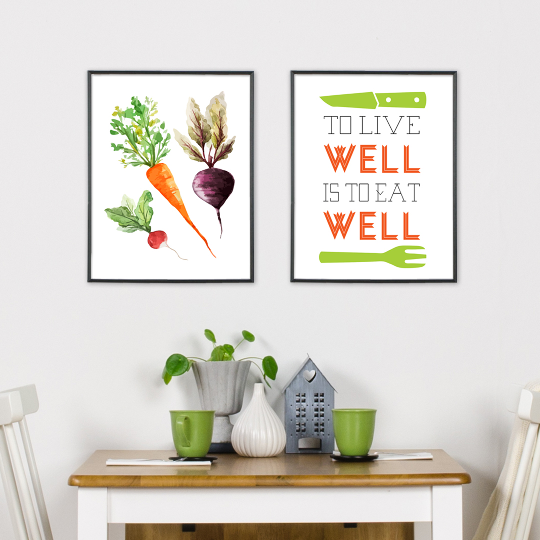 Graphic print with a beautiful illustration of a radish, carrot, and beetroot. The poster is equally stylish to hang in the kitchen as on a picture wall with a garden theme in the living room, or perhaps in the children's room above the toy kitchen. The print's sleek feeling makes it fit well into all interior styles, from the country kitchen to retro decor and in a Nordic cool style. Complement with a picture frame that matches the room's decor to create a cohesive feeling in the environment. Kitchen posters often look very nice together with silver-coloured picture frames that match the sink, mixer tap, and other metal details that are usually found in a kitchen.