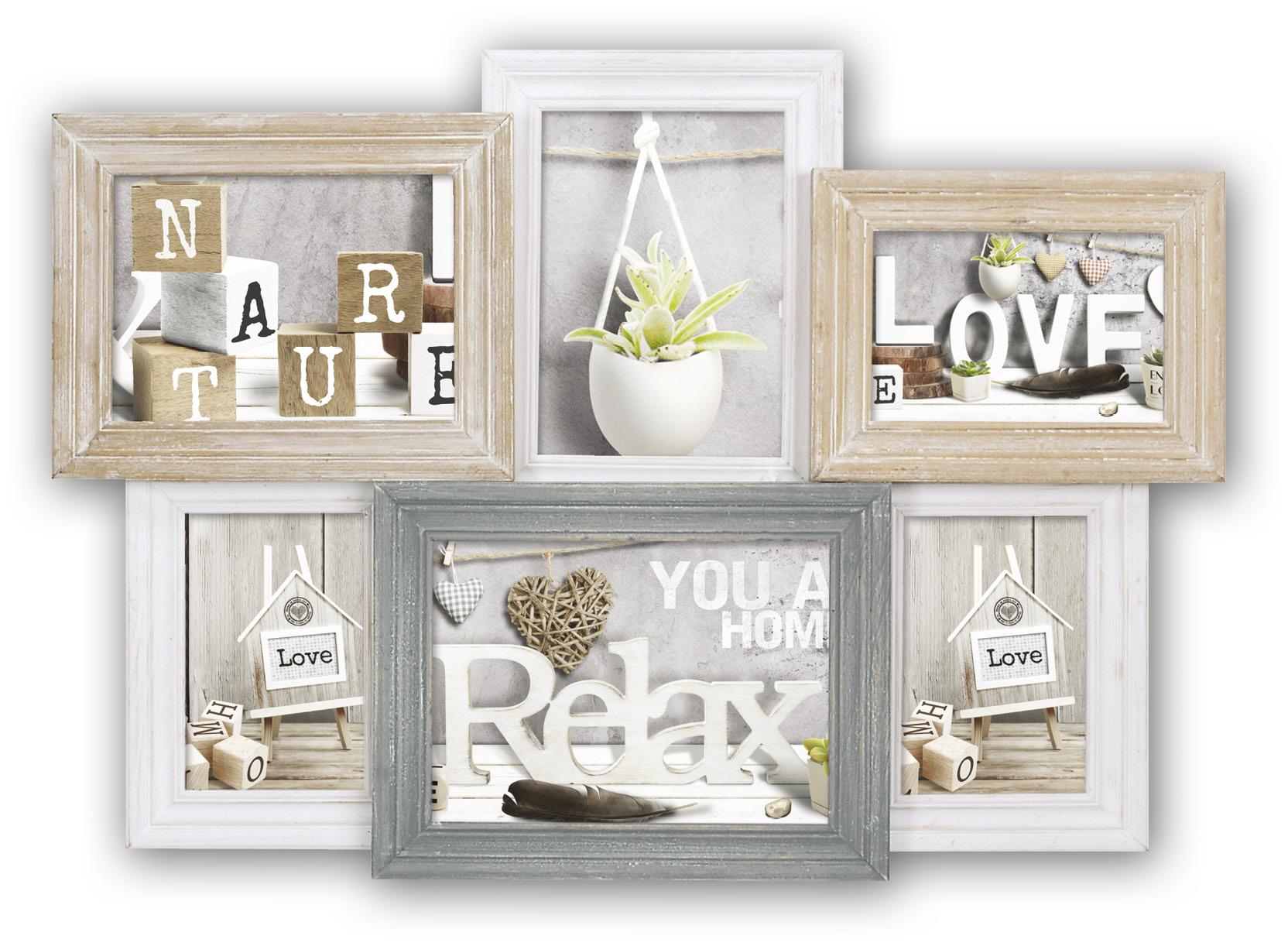 Let this charming collage frame bring a natural and relaxed atmosphere to your home! The frame has space for six pictures in different sizes. The frames are in wood, grey and white, and have time-worn details.