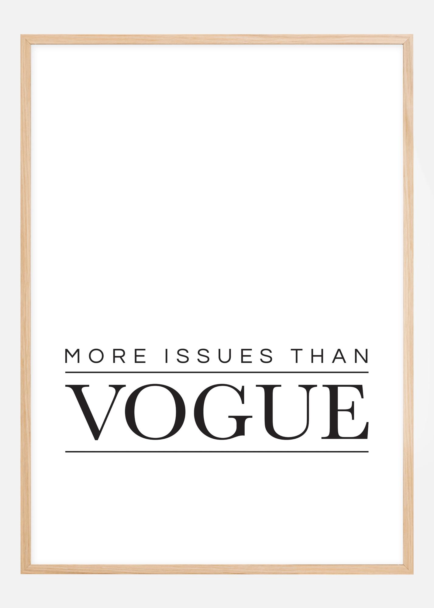 Create a delicious picture wall at home with stylish posters in various designs! Here we have a sleek, black and white print with a motif in the form of the text "More issues than Vogue" along with two decorative lines. The word "Vogue" is written in a font that brings to mind the major fashion magazine's logo. Feel free to match with a gold or silver coloured frame for a luxurious feel. Since the poster is available in several different sizes, you can easily find one that fits your wall.