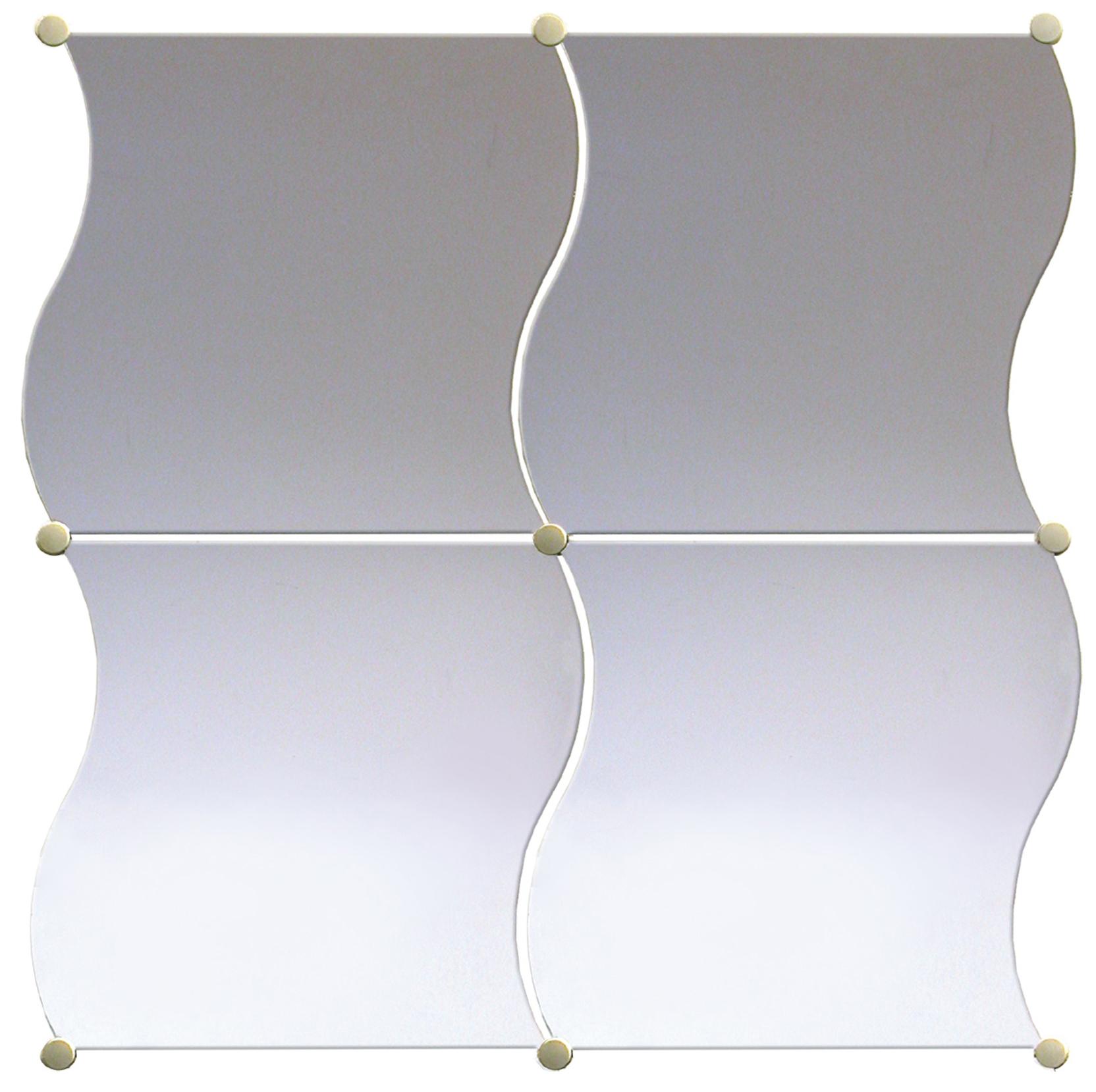 The perfect kit for designing your own mirror wall. A 4 pack of wave-shaped mirror pieces, each 3 mm deep and measuring 30x30 cm, and 10 sticky points so you can easily combine the mirrors and make as large a mirror wall as you want.