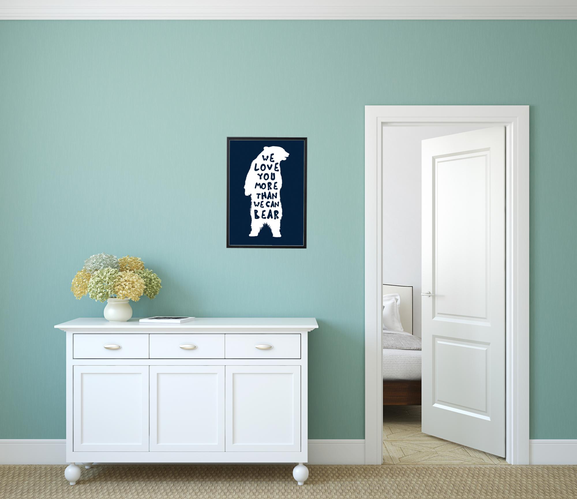 Clever and at the same time loving poster that suits those who particularly like bears. The graphic print is a nice gift to give to someone you want to show your appreciation. The poster features a silhouette of a bear in white against a dark background and an artistic white typeface on the quote. Frame the poster with a sleek and stylish frame that fits in with the rest of the decor to create a cohesive feel in the environment.