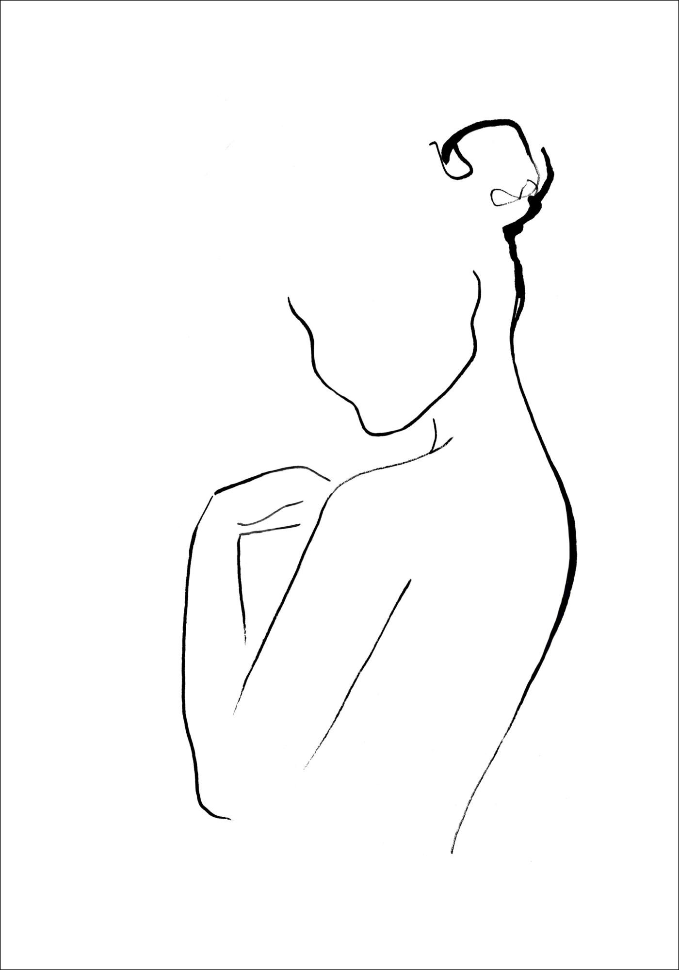Beautifully delicate line art of a woman drawn in ink, created by artist Cora Eklund, Cora Konst & Illustration. A simple and stylish poster that suits most homes and interior styles and which in its execution is easy to combine with other favourites on a larger picture wall.