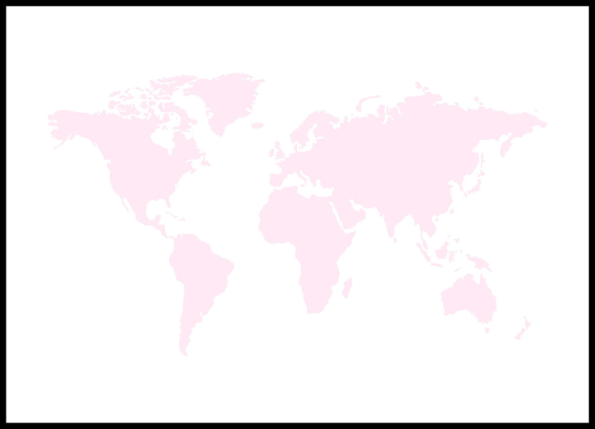World map Rose pink Poster (30x40 cm)