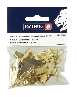 Got loads of lighter posters or wall art that you want to hang on a wooden wall quickly and easily? Then these flexible x-hooks and matching nails are perfect. The hooks and nails have a brass-coloured finish and are delivered in a bag of 25 pieces.