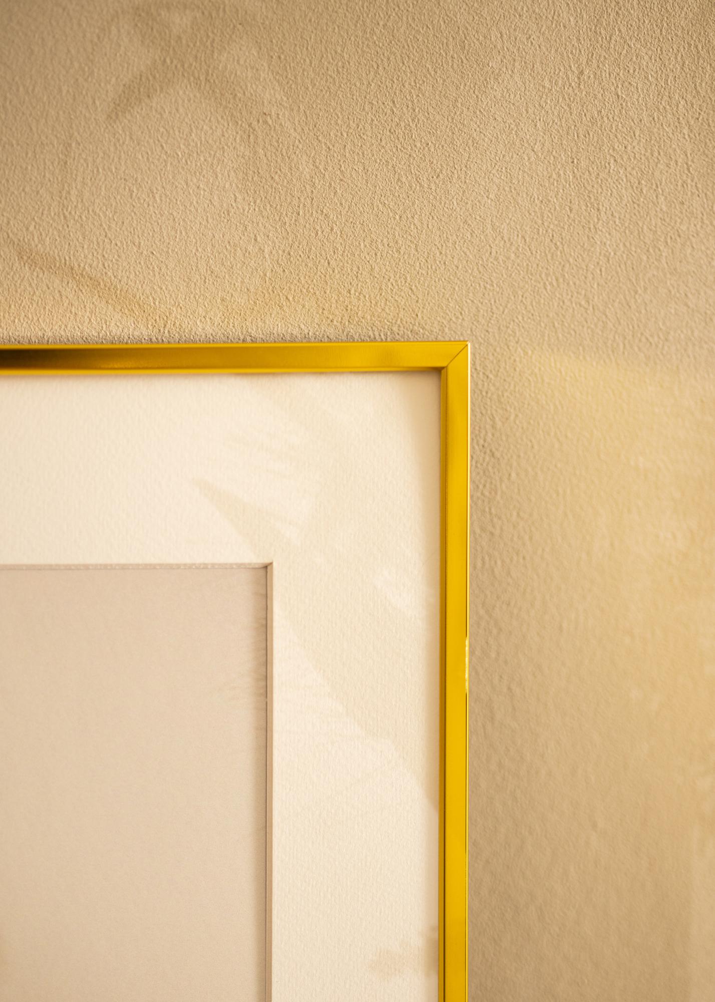 Experience a touch of elegance with our gold frame in size 40x50 cm, a perfect combination of style and function. This gold-coloured glossy photo frame is designed to give your photos and artwork a luxurious framing that catches the eye. With its thin frame border of only 7.8 mm, it becomes a discreet but still grand addition to your interior design.