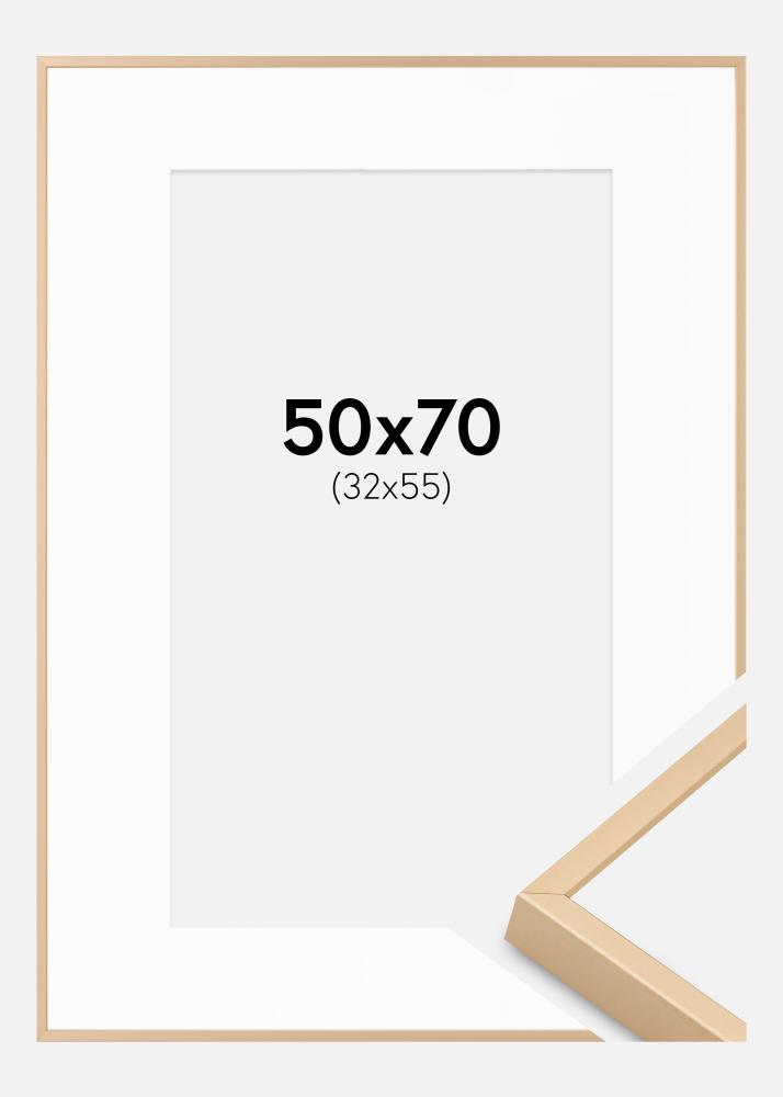 Transform your pictures into artworks with our elegant brass frame, complete with a sleek white mat. This frame is designed to fit images sized 33x56 cm and provides your photographs with a sophisticated framing that truly highlights the subject.