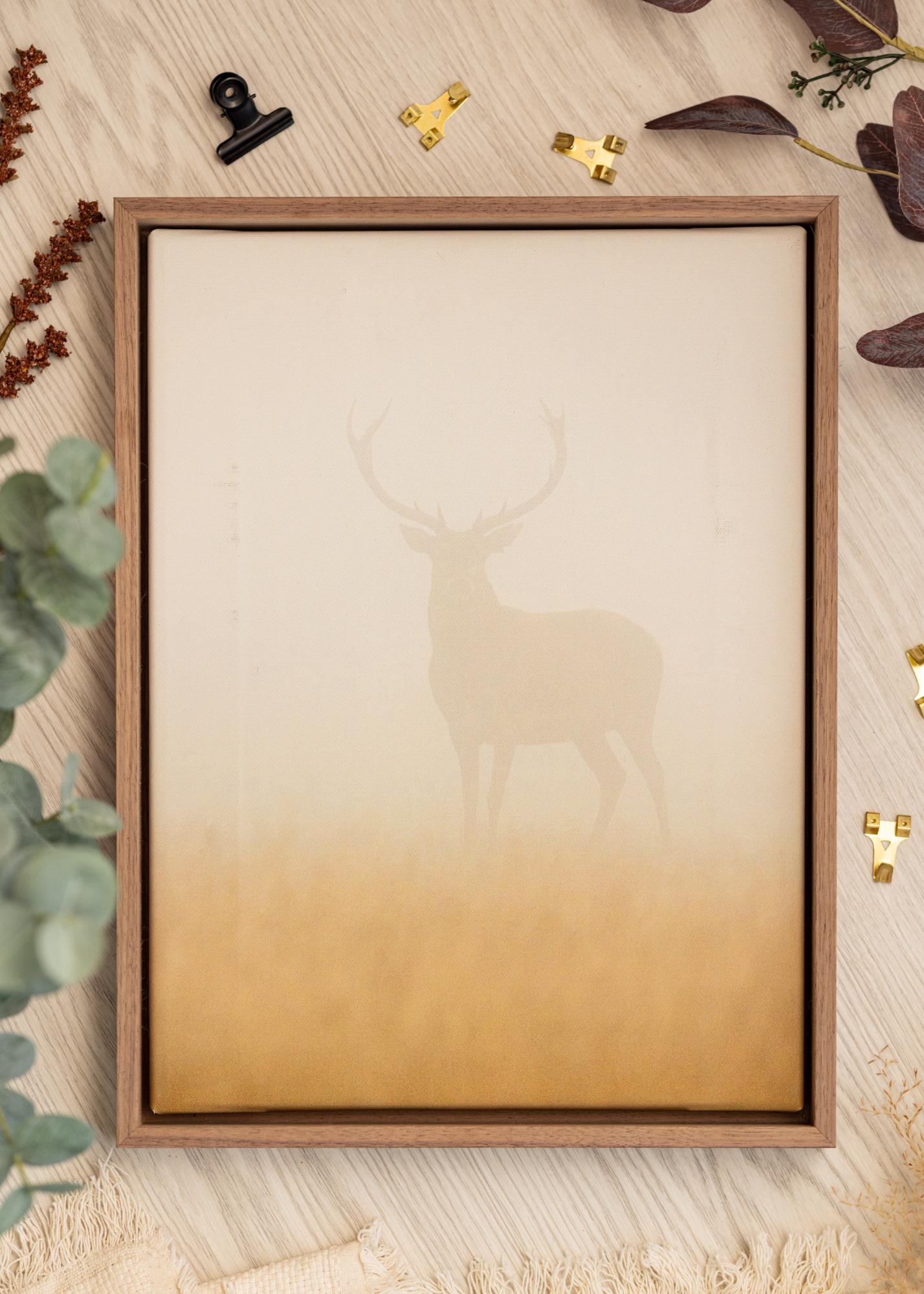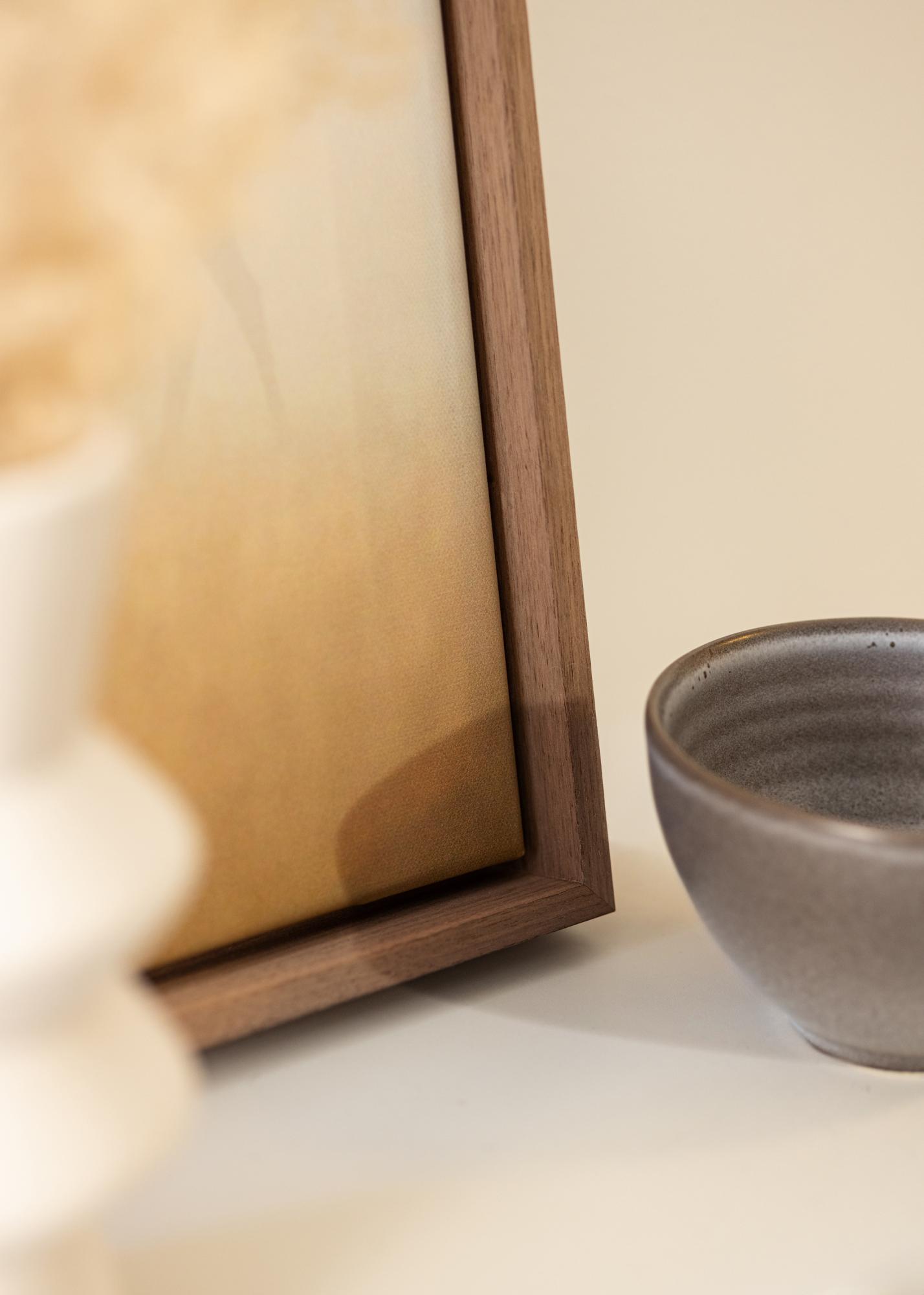 Discover our custom-made Anubis Canvas Frame in walnut color, perfect for giving your canvas paintings an elegant framing. With a 55 mm wide frame strip and a depth of 45 mm, this photo frame is designed to fit canvas paintings with a depth of 28–38 mm. This creates a floating effect that highlights your subject in a stylish way.