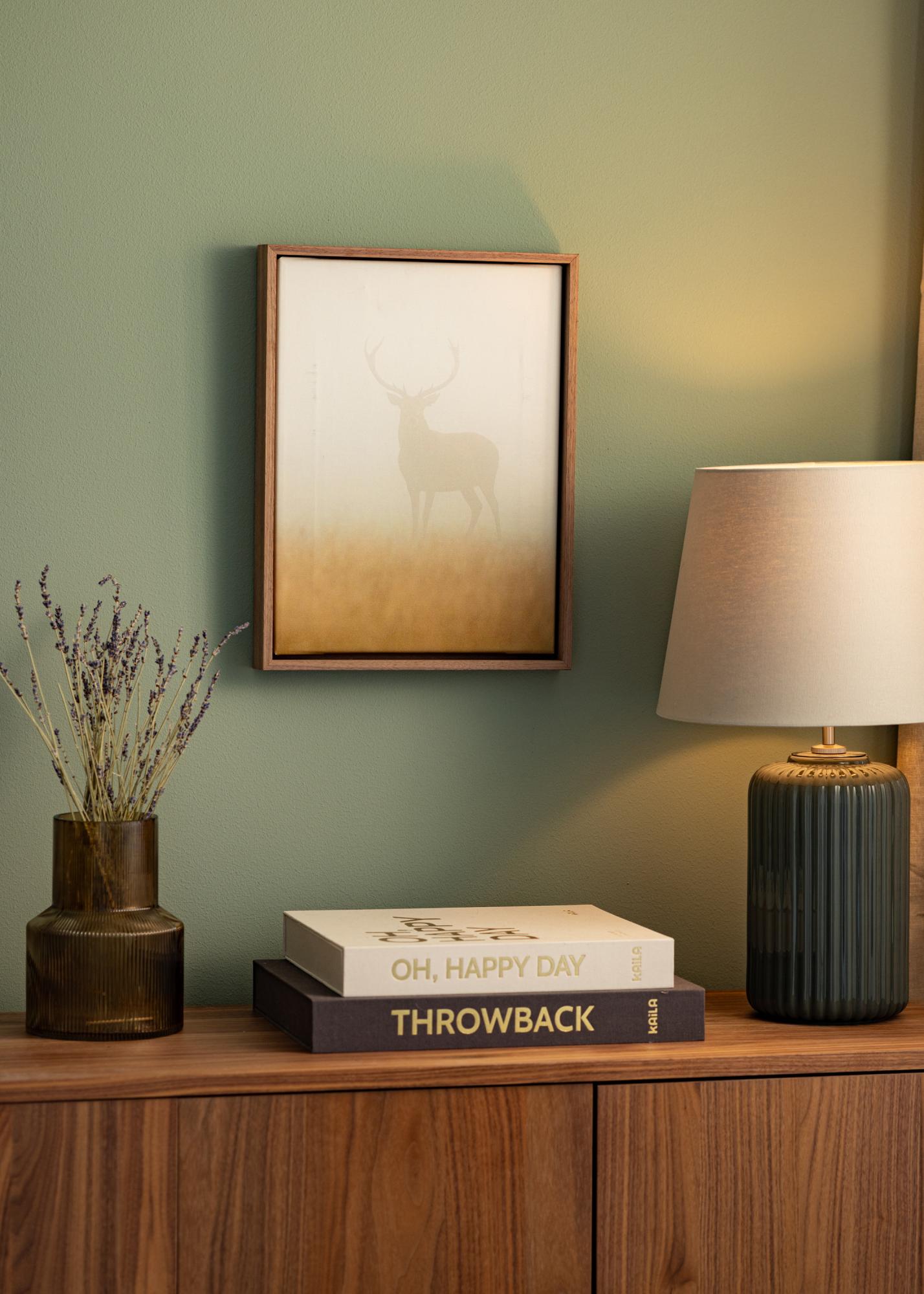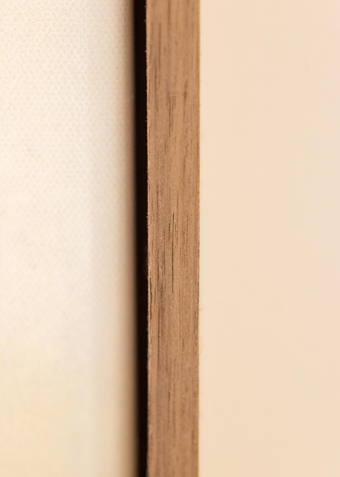 The frame is made of pine and has a beautiful walnut-colored finish that accentuates the natural grain of the wood. Each frame is made in our own frame workshop, allowing us to offer you a product that is tailored to your specific needs. Please note that since this product is custom-made, the purchase cannot be canceled after ordering.