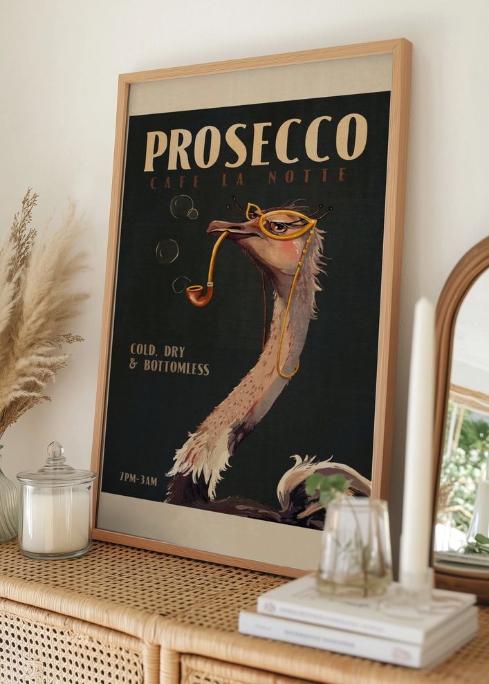 Art Deco Prosecco Wall Art Of An Ostrich Poster