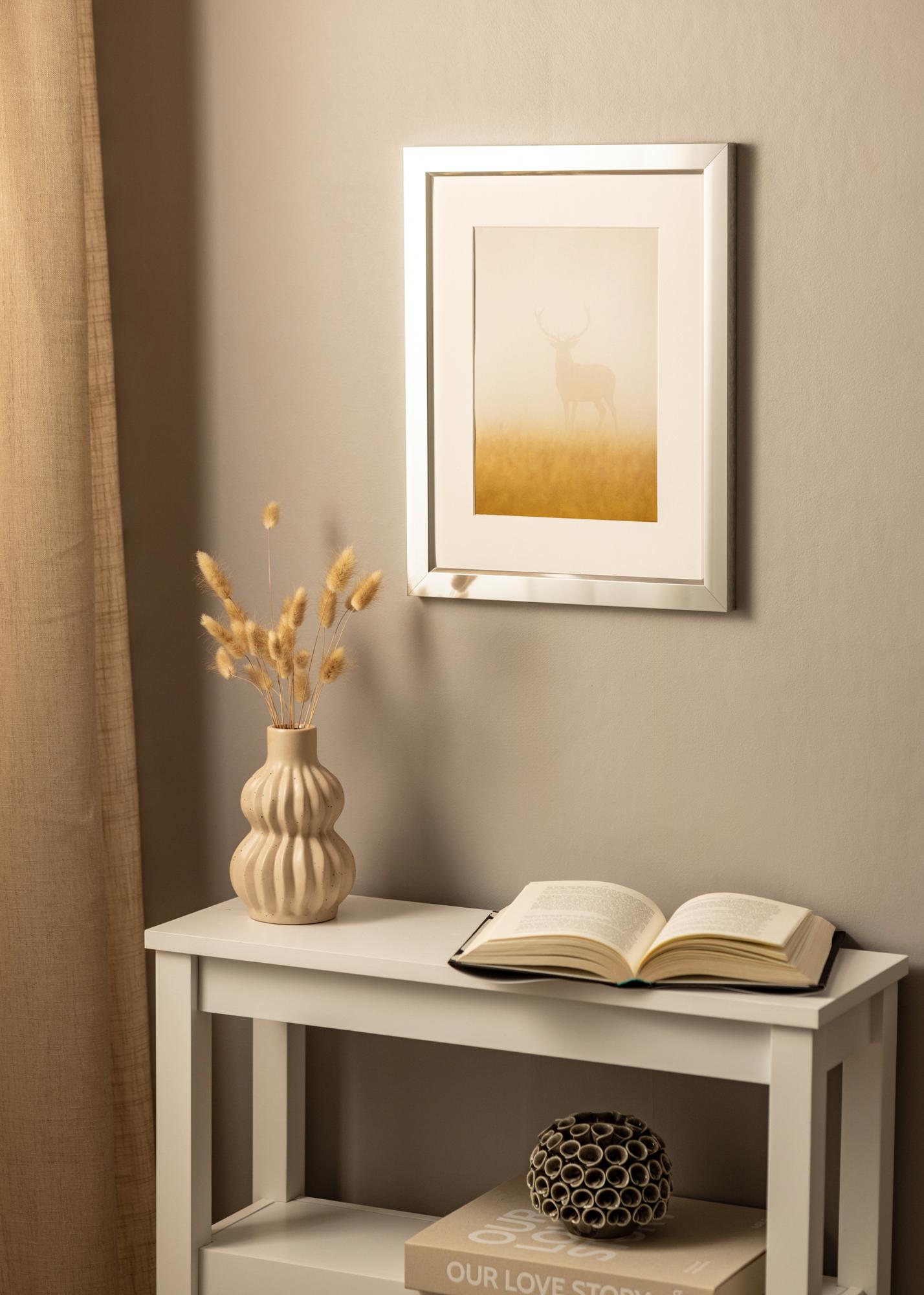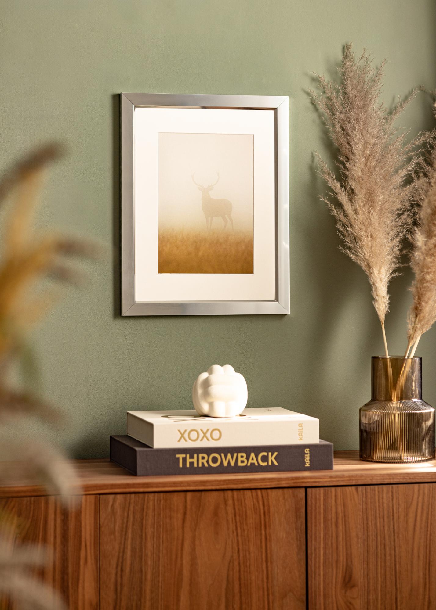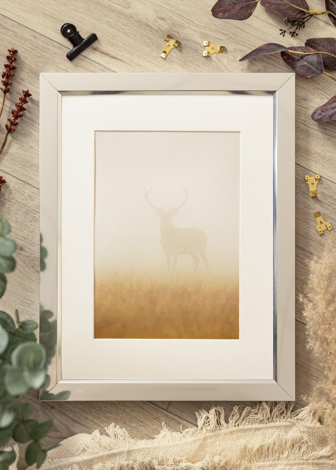 Stylish high-quality, shiny silver aluminium picture frame made in Germany with a mirror glass feel. The high-gloss look attracts the eye and reflects the light in a beautiful way while drawing focus to the subject of the picture. The frame's minimalist design language means it fits nicely into modern interiors, but it can also be a nice accent piece in rooms of other interior design styles. Complete the frame with a mount to get the picture looking just right.