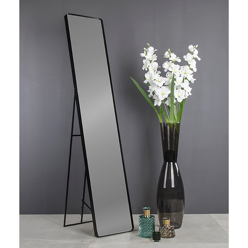 The floor mirror is equipped with a built-in stand that allows it to stand by itself on the floor. Perfect when you don’t want to drill holes in the wall, or if you want to be able to move the mirror around easily.