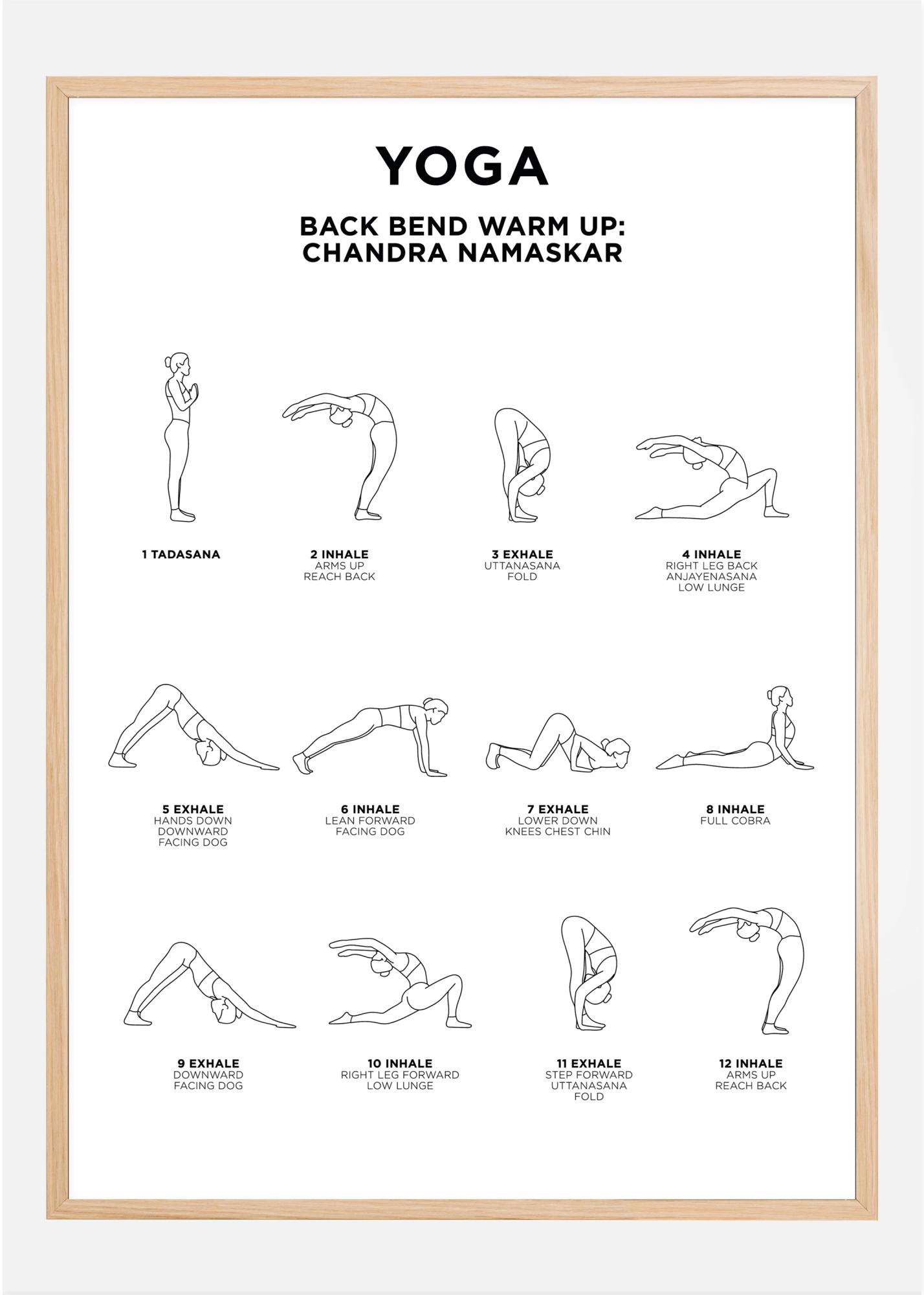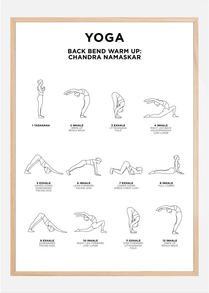 Trendy poster that can be ideally matched with other motifs to create a trendy picture wall. The poster is stylish with a minimalist design, but also serves as a helping hand when you want to learn one of yoga's classic warm-up exercises "Chandra Namaskar". The poster is available in black or white and in a variety of sizes.