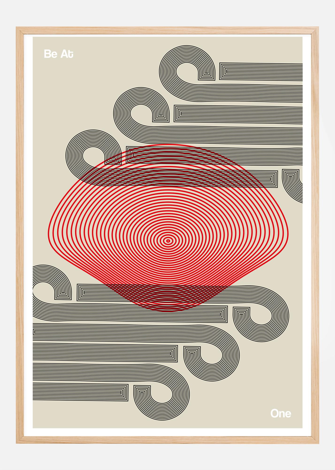 This artistic poster titled "Be At One" is a tribute to abstract art and modern design. With its mesmerizing red spiral at the center and black and white lines creating an illusion of movement, this print becomes an immediate eye-catcher in any room. It is designed to spark the viewer's curiosity and inspire reflection, making it a perfect conversation starter for a living room or office.