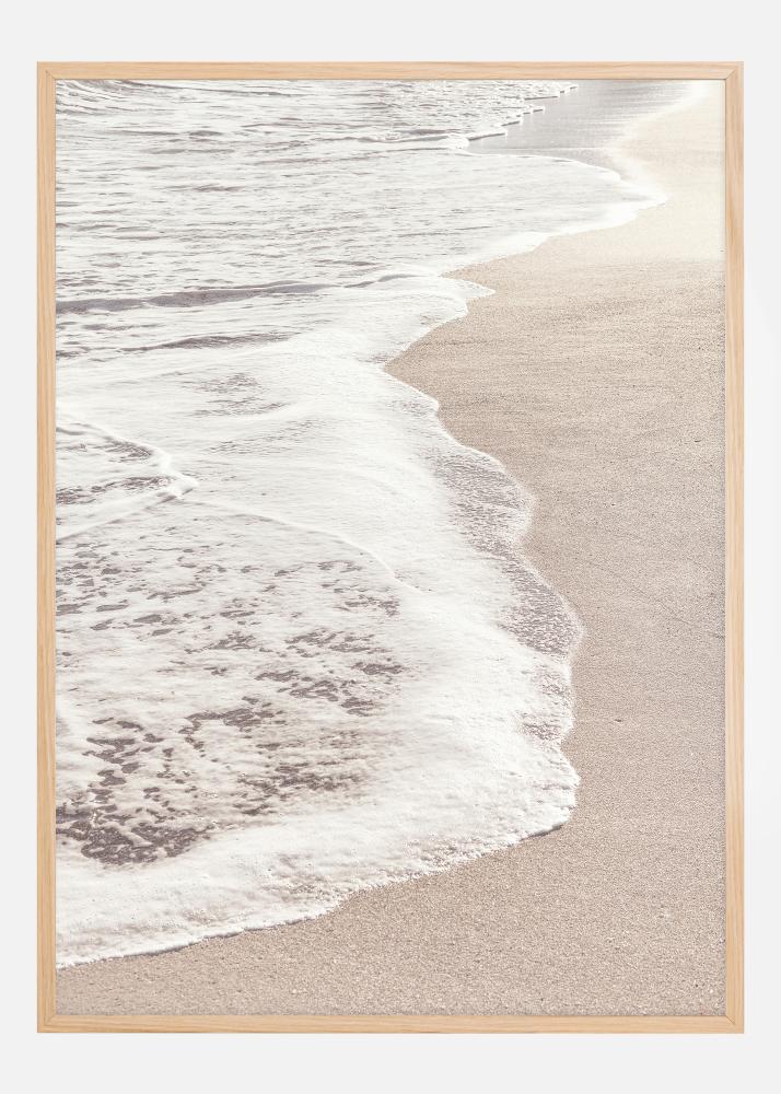 This atmospheric poster depicts the calm rhythm of the ocean waves slowly rolling onto the golden sandy beach. The harmonious transition from water to land captures the ocean's eternal cycle and the serene beauty of the coast's simple landscape. The poster's soft, neutral colors and the delicate patterns of foam on the sand convey a sense of tranquility and a timeless connection with nature.