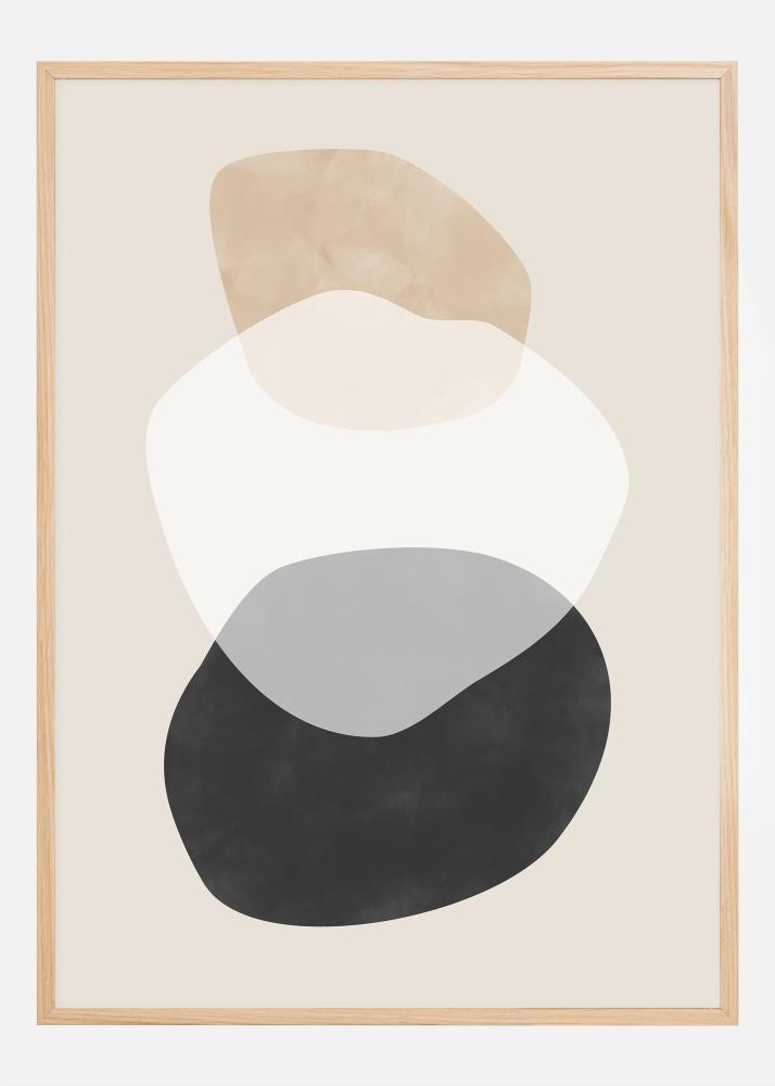 This artistic poster exudes a calm and modern aesthetic that fits perfectly in a contemporary home or office. With a minimalist design consisting of overlapping abstract shapes, this motif offers a harmonious balance between soft contours and subtle color contrasts. The color palette includes tones of beige, cream, gray, and deep black, creating a discreet yet bold expression on the wall. The simple yet effective artwork is a nuanced representation of Scandinavian design, ideal for creating a relaxing atmosphere in any room.