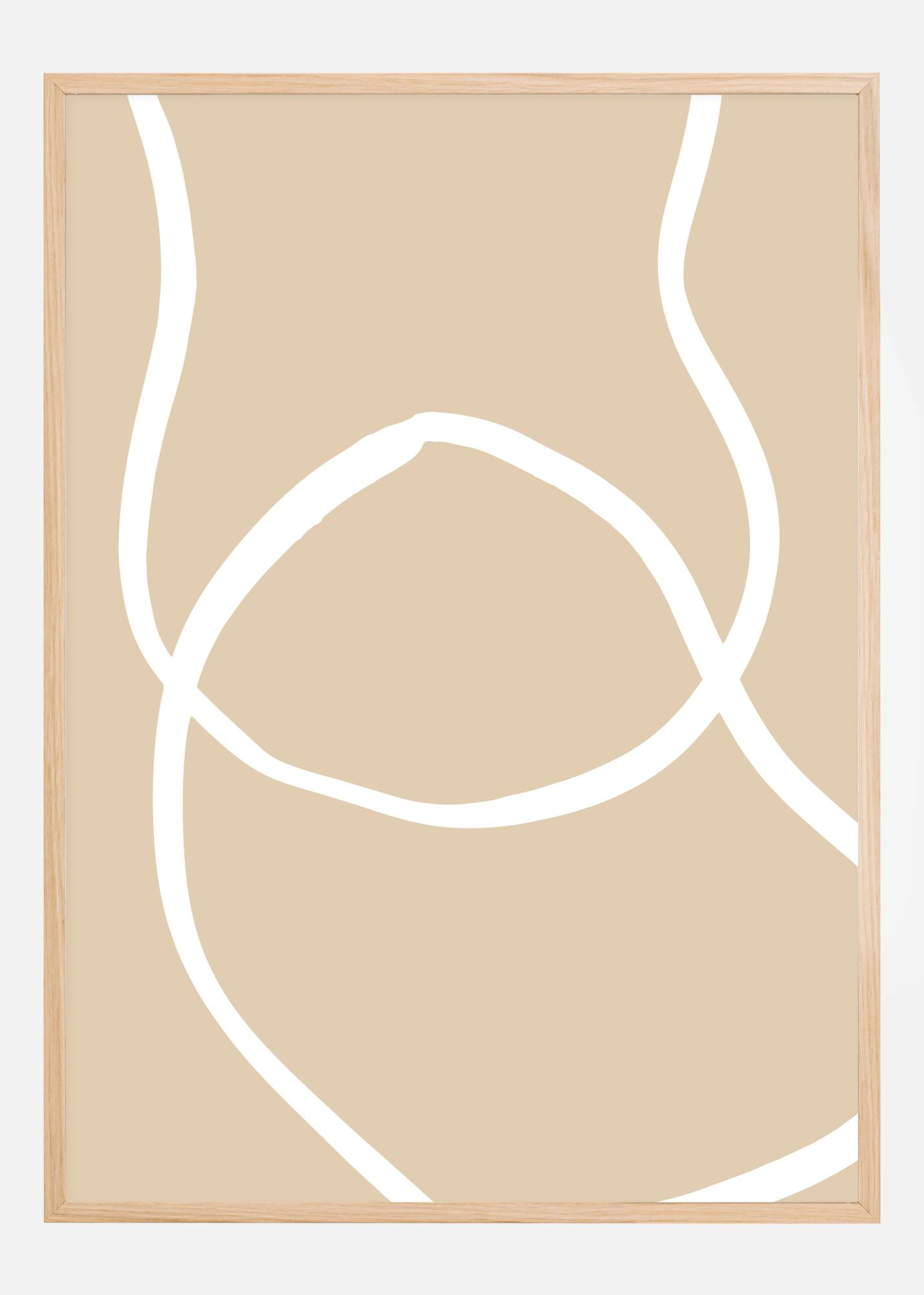 A minimalist poster of cream lines creating shapes on a plain beige backdrop. The curving lines move across the piece, intersecting in the middle drawing the eye to the overlapping circular shape. For a bold statement, hang on a bright blue wall and make the beige pop.