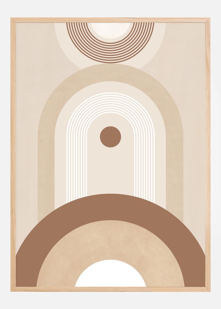 Explore the beauty of geometry and minimalism with this distinctive poster, a part of our curated art collection. This print, inspired by mid-century modern aesthetics, combines circular shapes and lines to create a sense of balance and harmony. The soft beige and brown tones in this poster convey a feeling of calm and are perfect for creating a relaxed and elegant atmosphere in any room.
