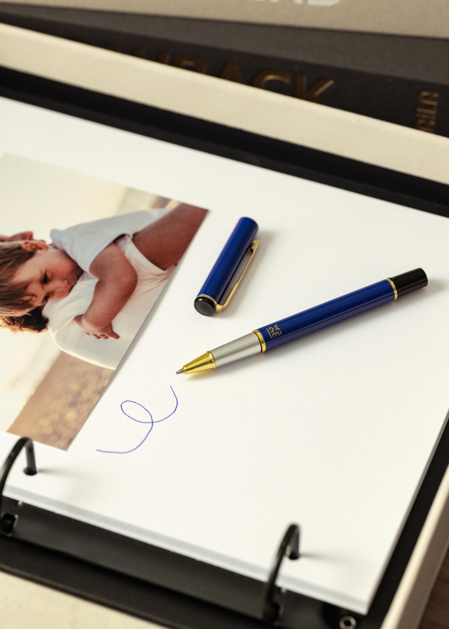 This elegant album pen in blue is the perfect tool for writing personal notes in your photo album. With its smooth and precise 0.5 mm tip, it provides an even and pleasant writing experience, making it ideal for dating photos, writing comments, or creating decorative details.