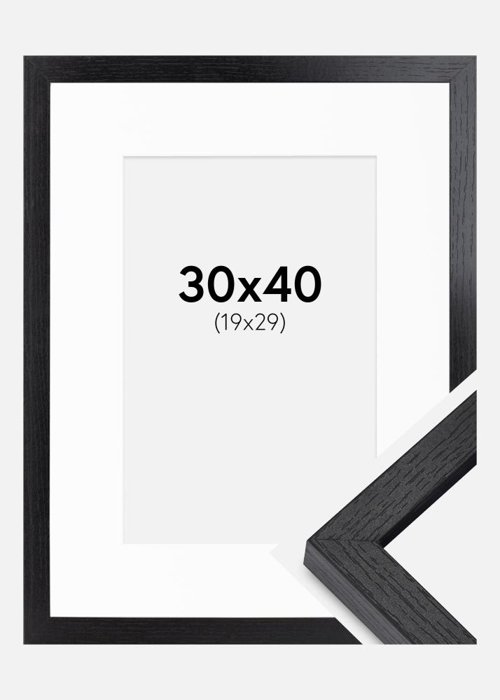 This elegant black frame with mat is perfect for highlighting your favorite pictures in the size 20x30 cm. With a frame width of 20 mm and a depth of 30 mm, it offers a sleek framing that fits in most homes.