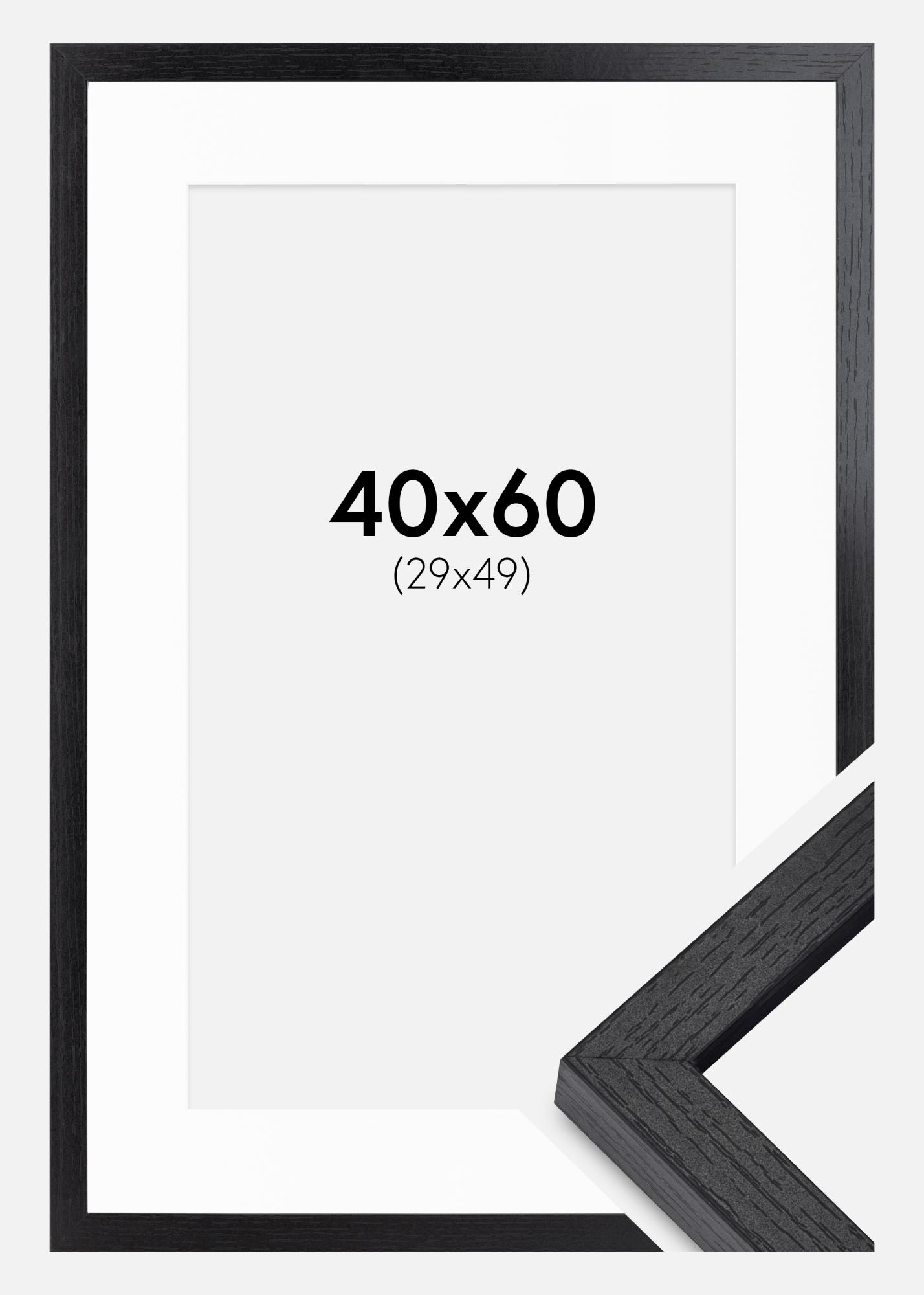 This elegant black picture frame with a white mat is the perfect choice for highlighting your favorite images. The mat is designed to fit an image sized 30x50 cm, providing a sleek framing that tastefully showcases the subject.