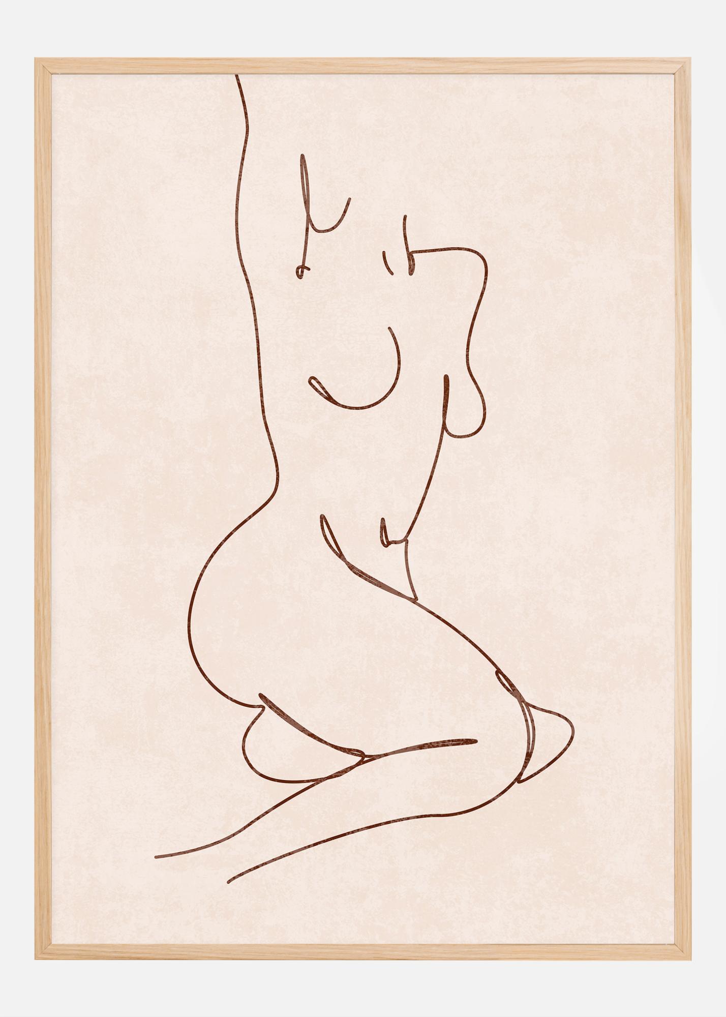 This elegant and minimalist poster depicts a female figure in a simple, flowing line. The art's subtle expression and stripped-back style are a tribute to the simplicity of beauty. The suggestive contour creates a strong image with minimal detail, making it a contemporary interpretation of classic beauty and the body's natural curves.