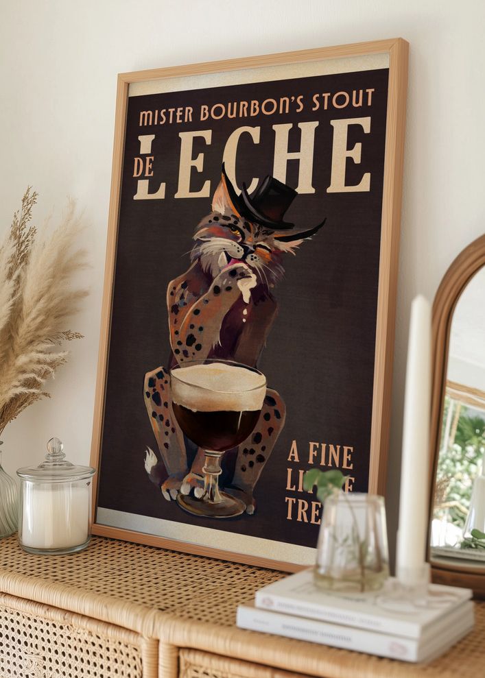 Bourbon De Leche Guinness Style Cat Art Poster