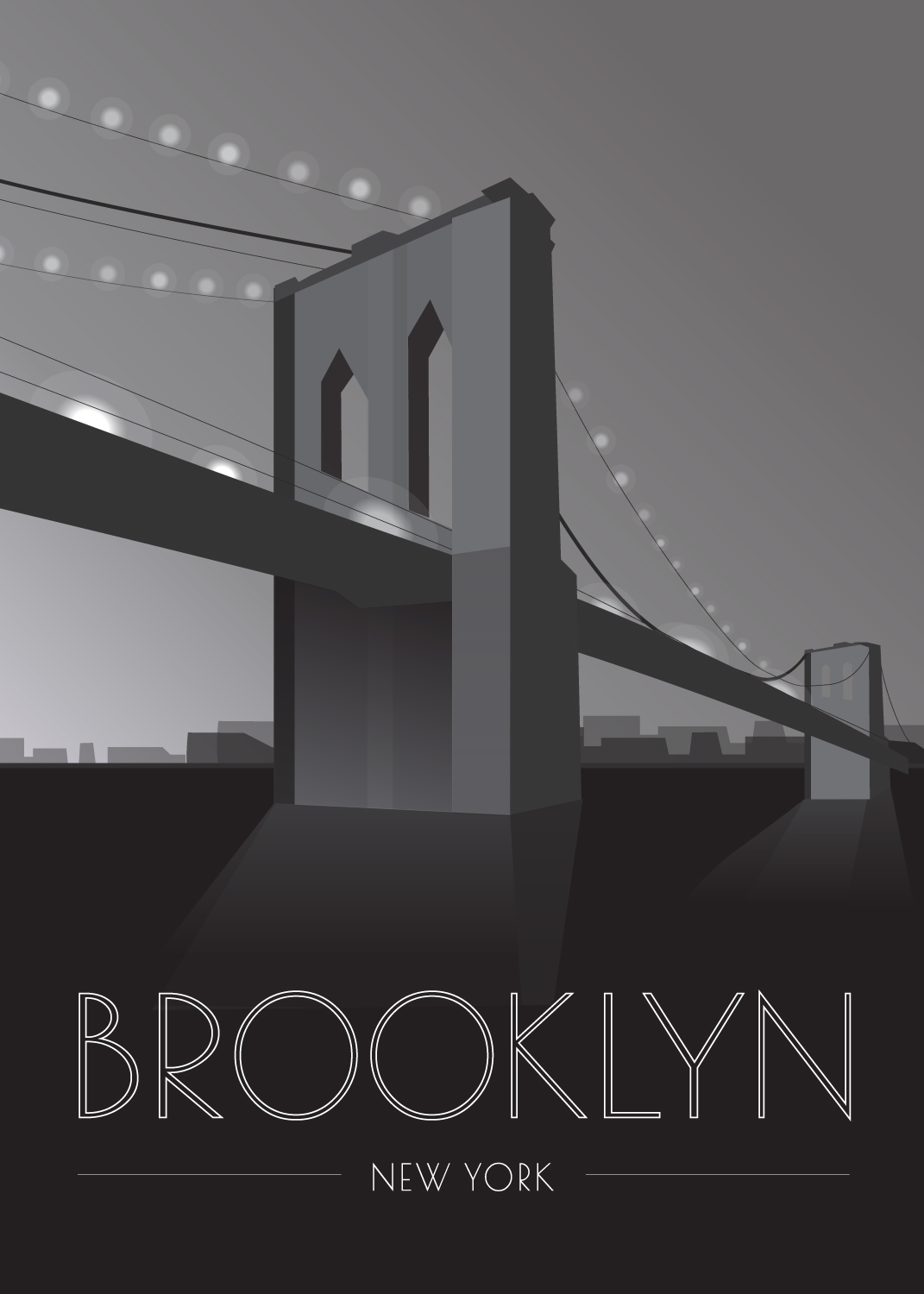 Travel all the way to Brooklyn every time you look at this lovely art piece. Brooklyn Bridge is a high-quality poster that adds a nice retro feel to your home. The minimalist design is in white, grey, and black with the text "Brooklyn New York" in white. The grayscale makes it perfect to combine with your favourite colours! Hang it as it is or complement with a stylish frame and mat. Available in 6 different sizes and price ranges.