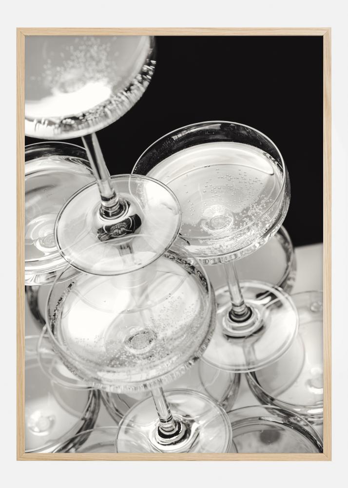 This elegant and sophisticated poster captures the sparkling charm of a champagne fountain. The transparent glasses, filled with bubbly champagne, are beautifully arranged in an impressive constellation. The richness of detail in the bubbles and the reflections of light in the glass bring the image to life and create an atmosphere of festivity and joy.